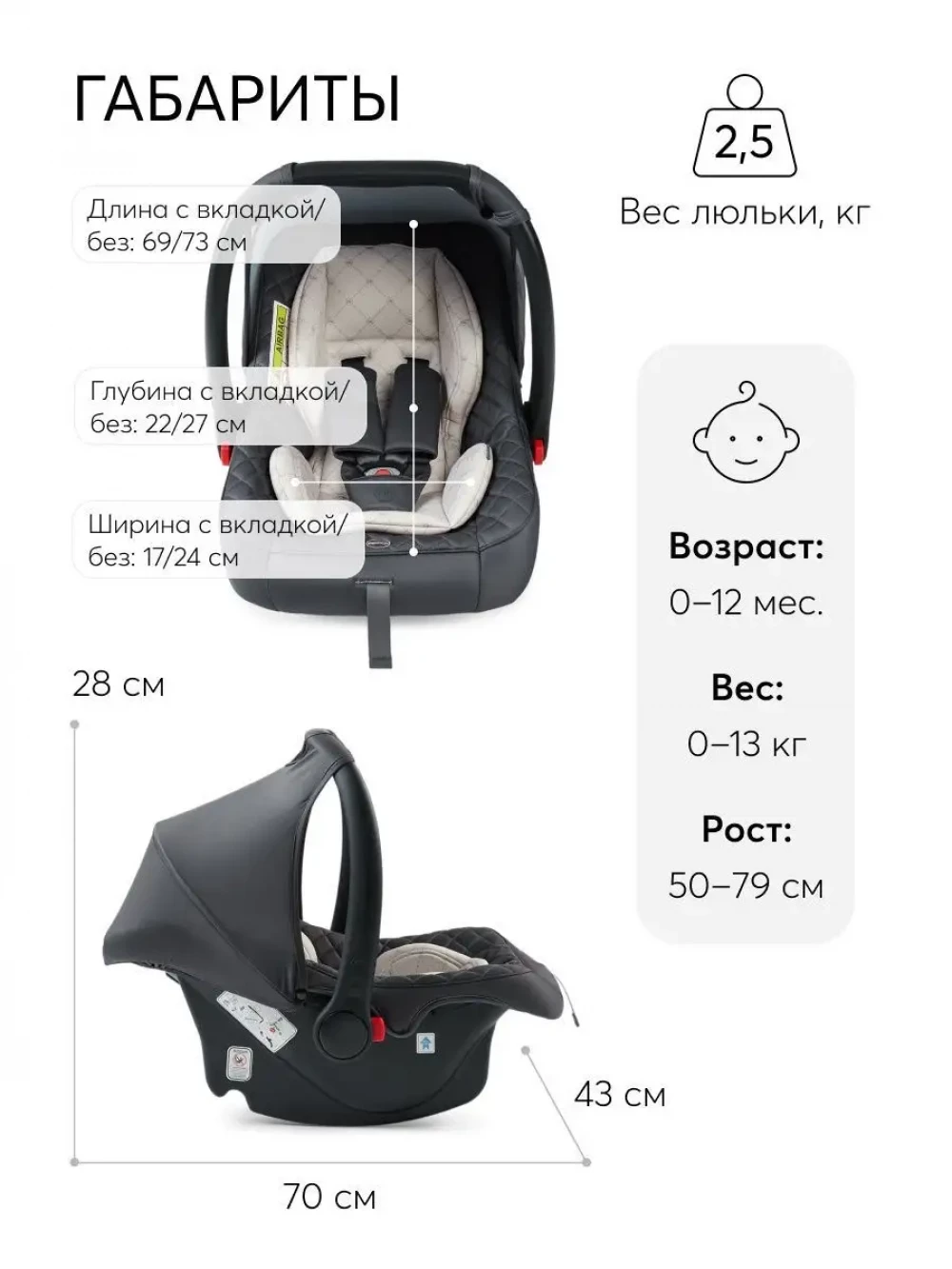 Автокресло Happy Baby Skyler V2 0+ (0-13кг) Dark Grey