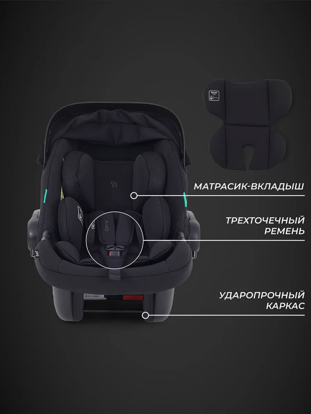Автокресло Rant Carry AY329 2.0 0+ (0-13кг) Black