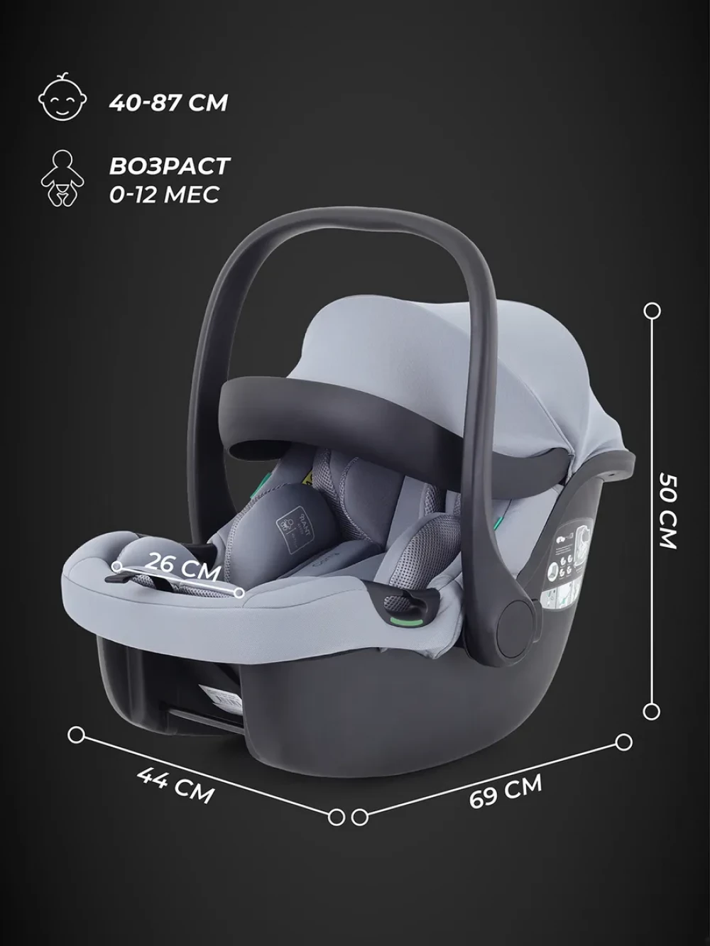 Автокресло Rant Carry AY329 2.0 0+ (0-13кг) Grey