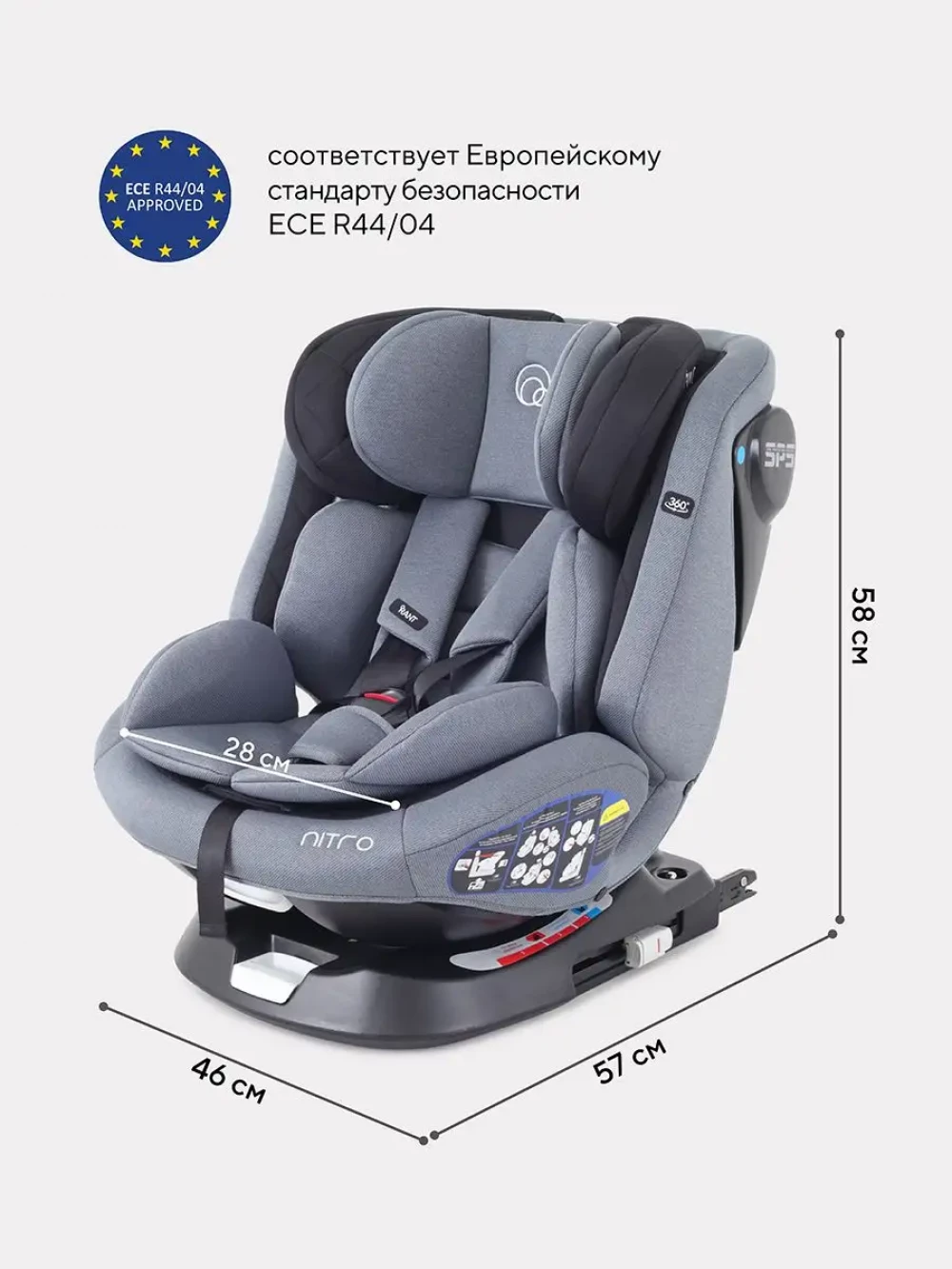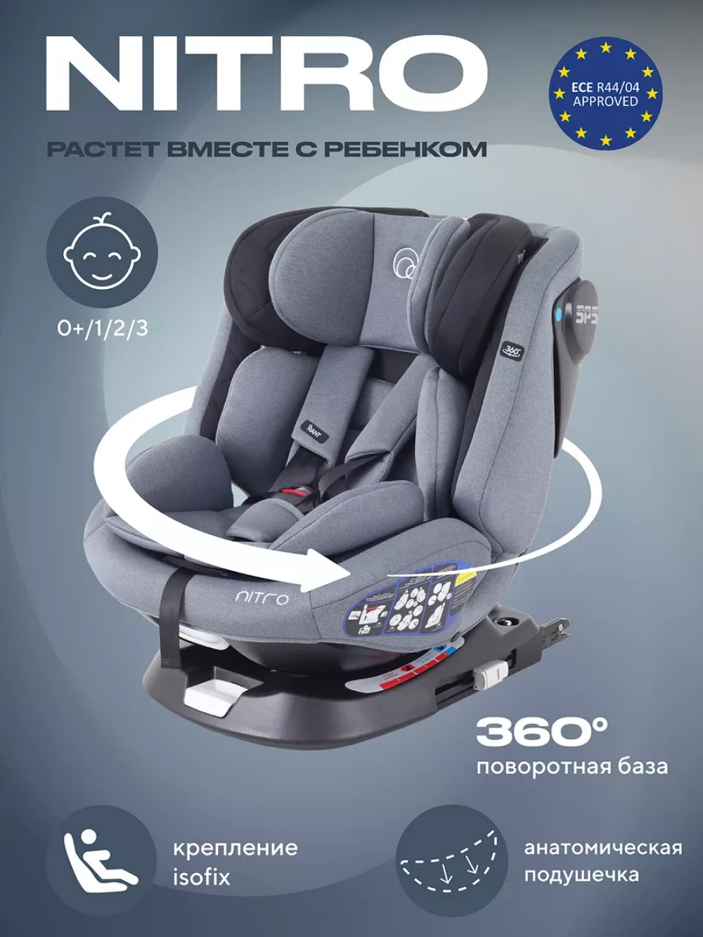 Автокресло Rant UB619 Nitro isofix 0/1/2/3 (0-36 кг) Grey/Black