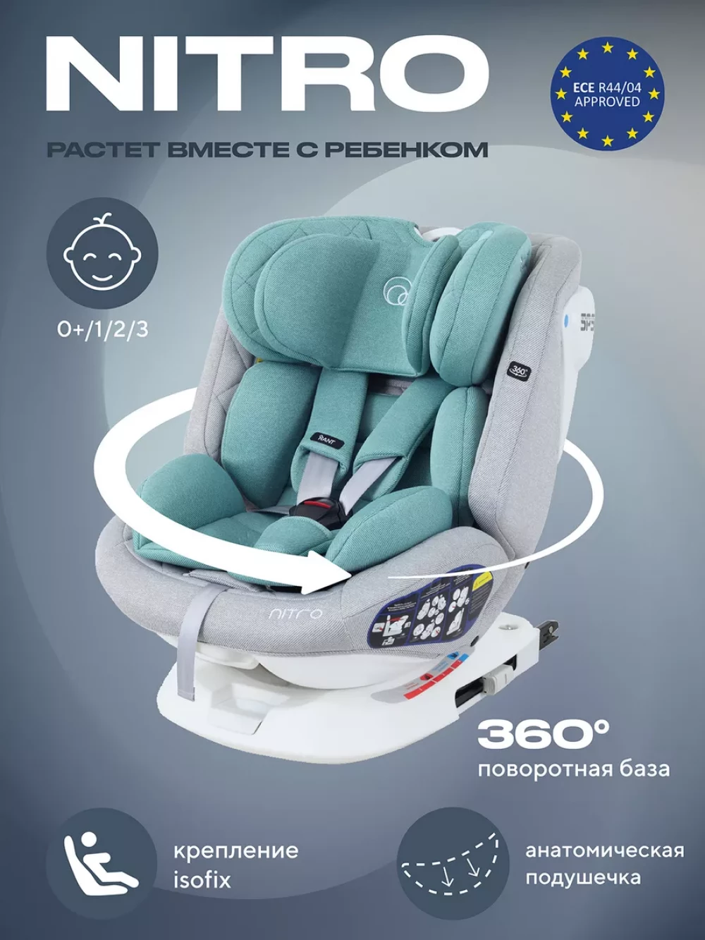 Автокресло Rant UB619 Nitro isofix 0/1/2/3 (0-36 кг) Grey/Mint