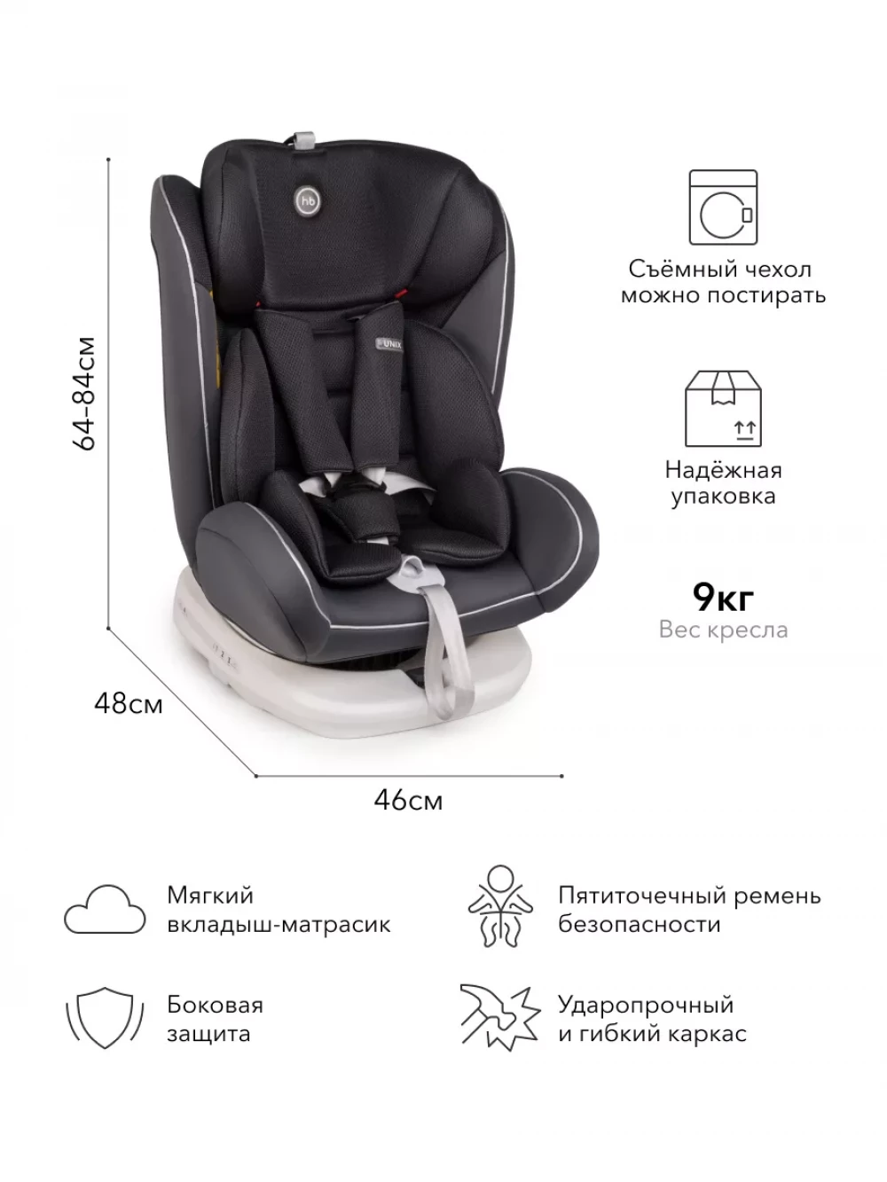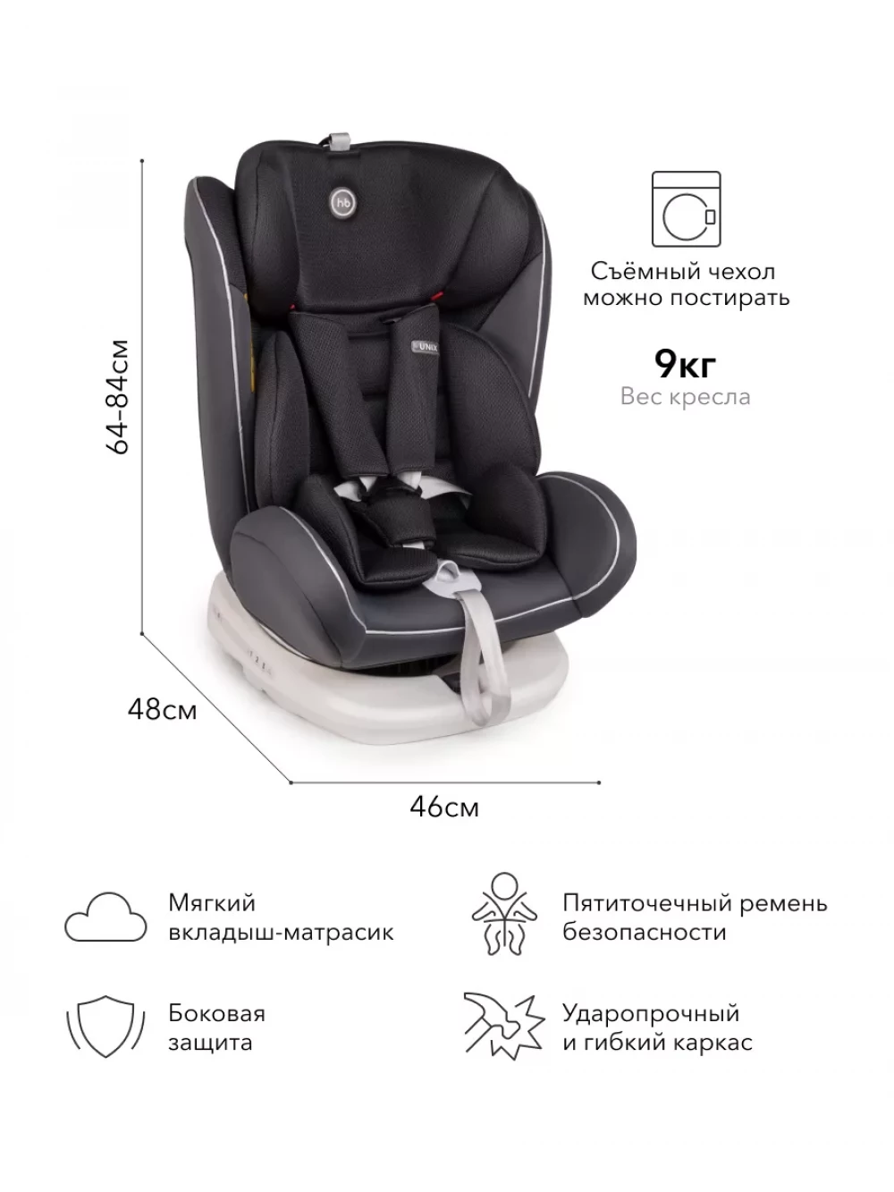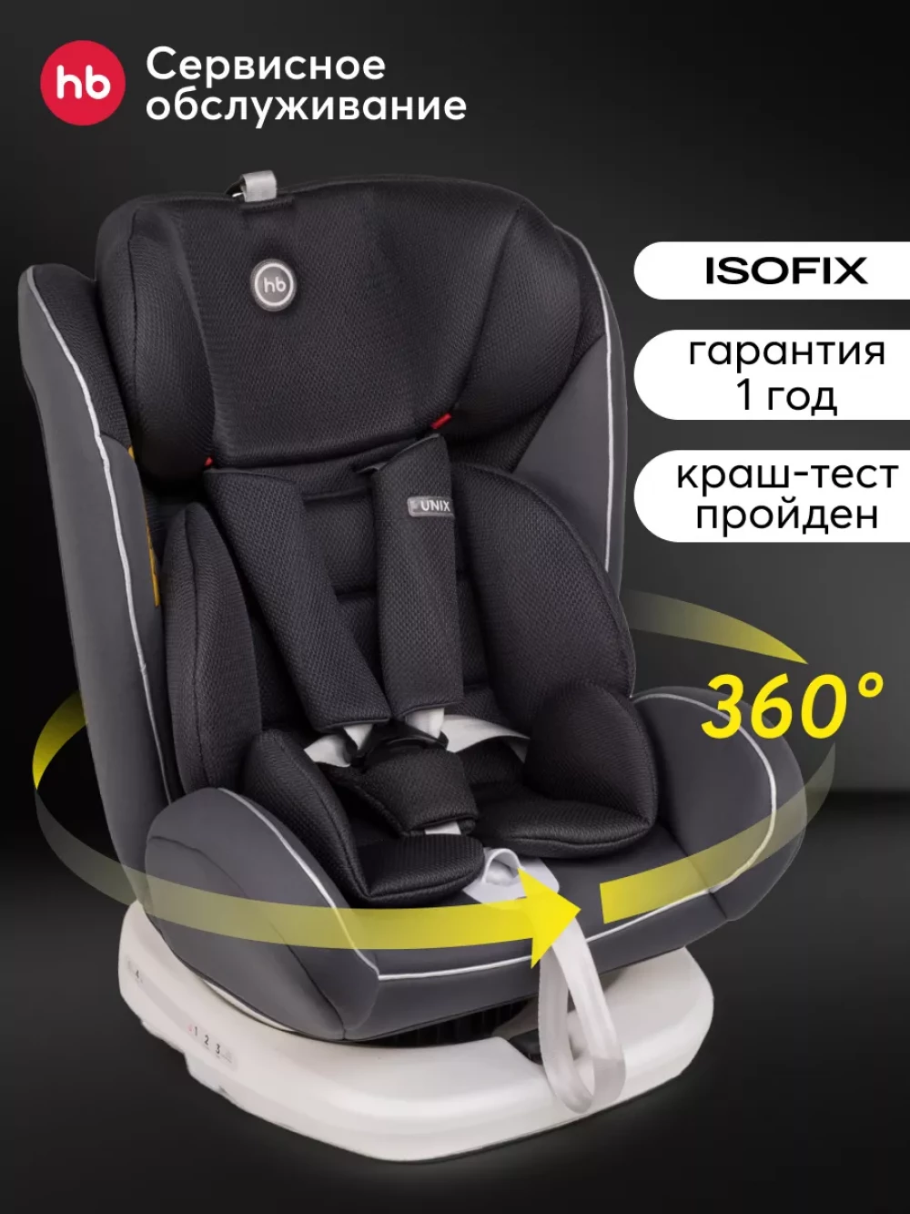 Автокресло Happy Baby Unix 0/1/2/3 (0-36 кг) Dark grey