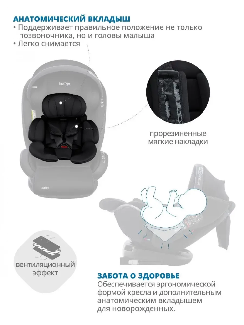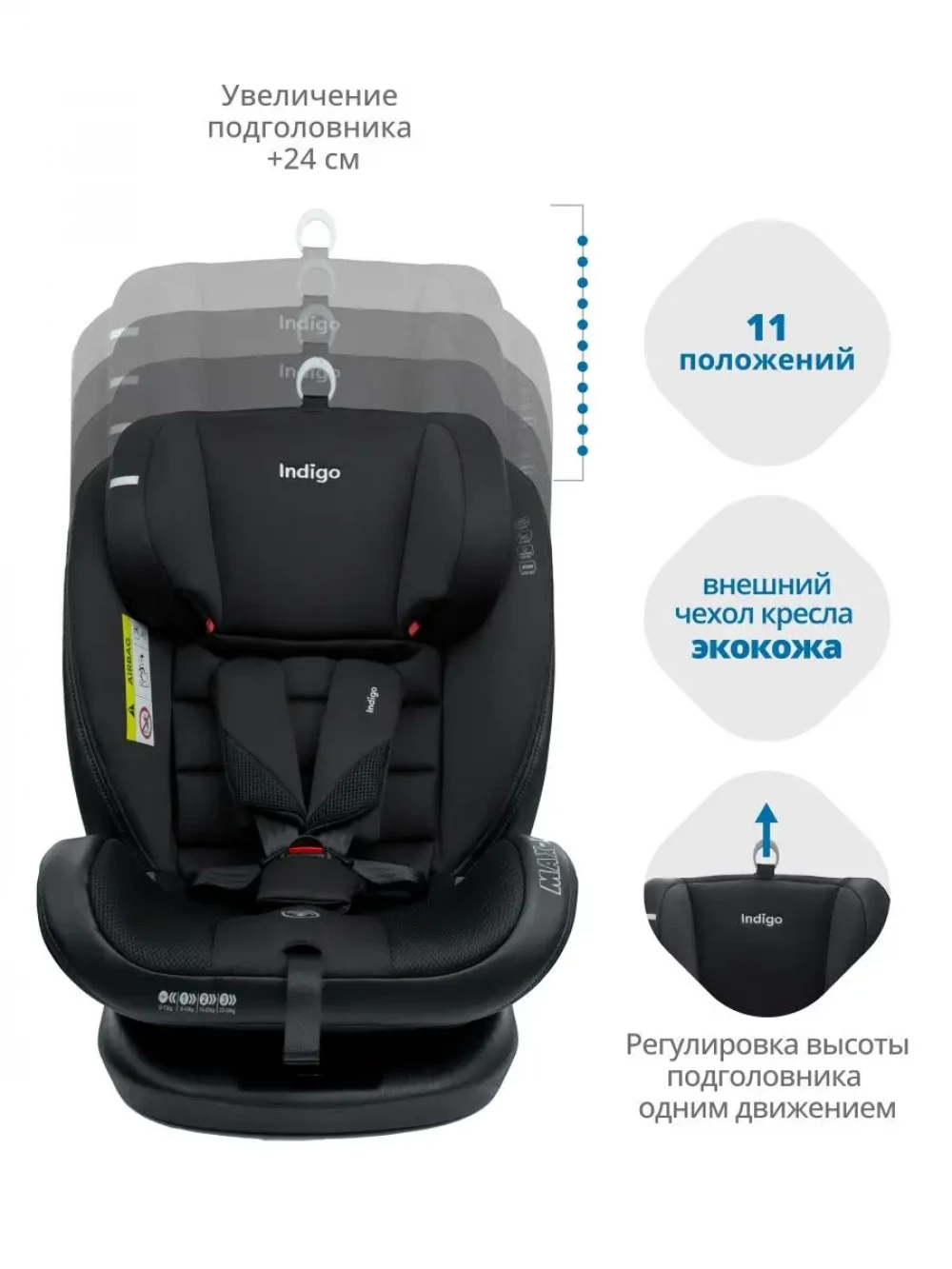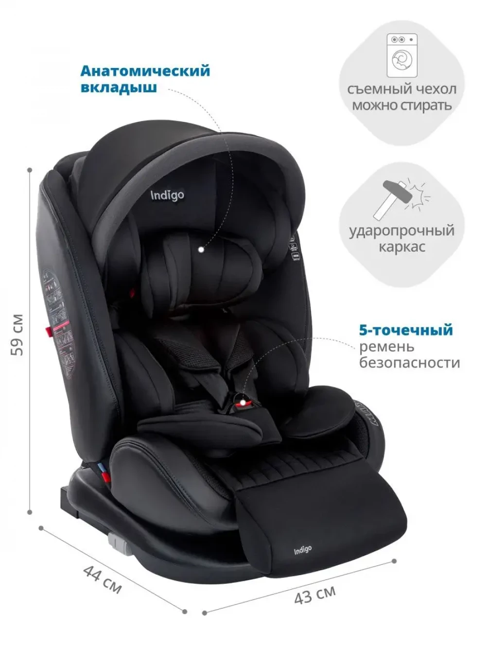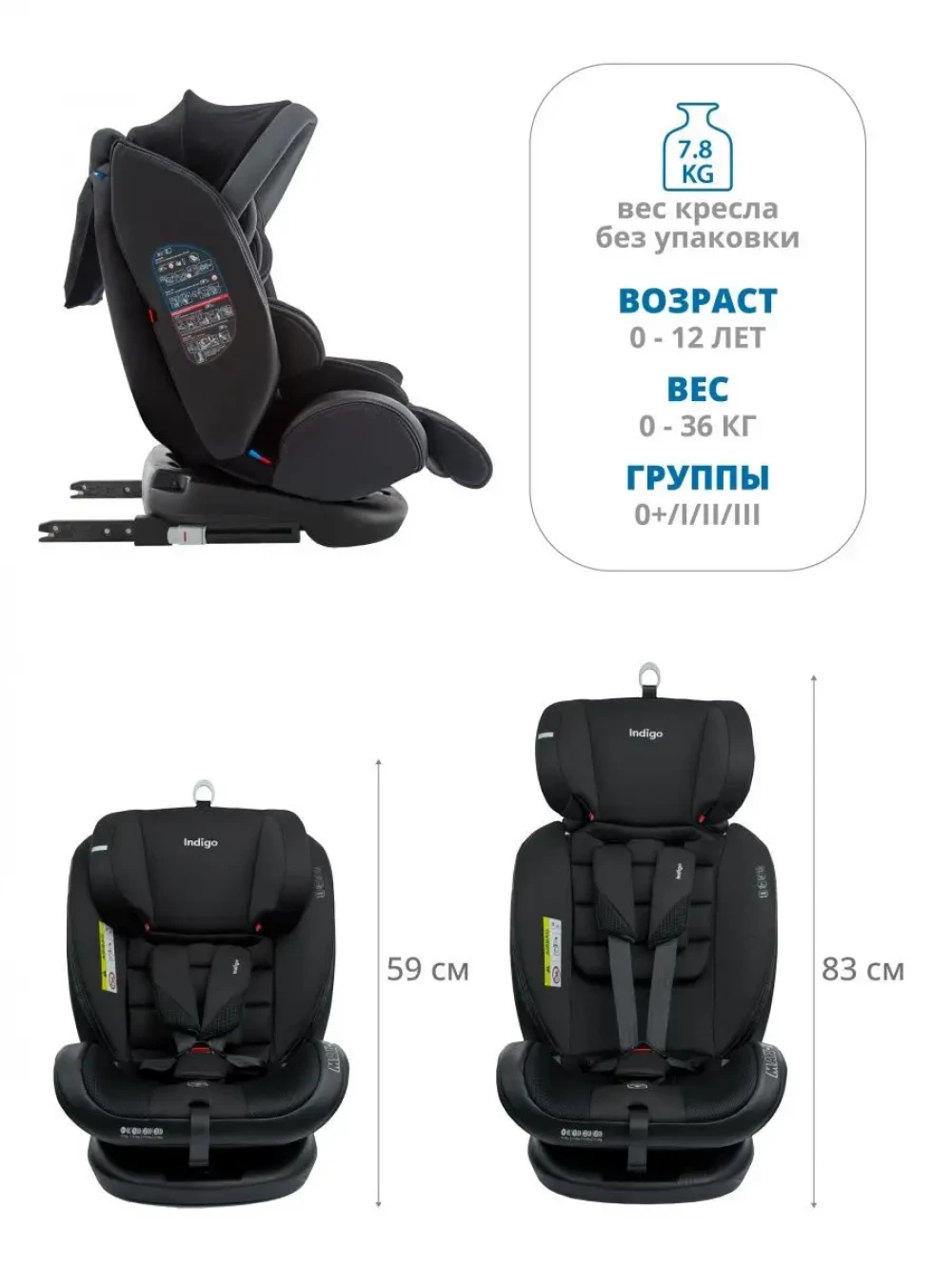 Автокресло Indigo Max-X isofix 0/1/2/3 (0-36 кг) черный