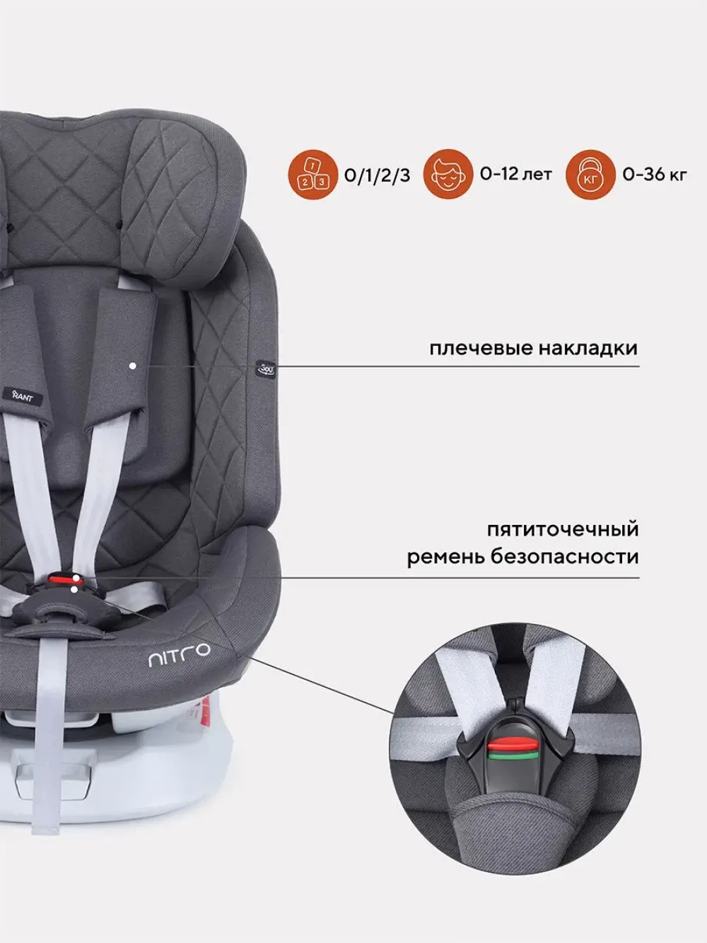 Автокресло Rant UB619 Nitro isofix 0/1/2/3 (0-36 кг) Grey