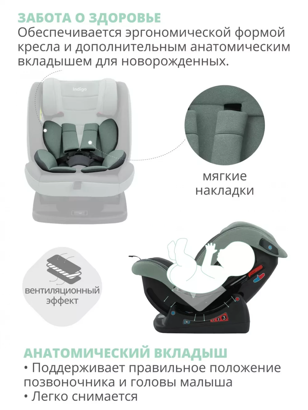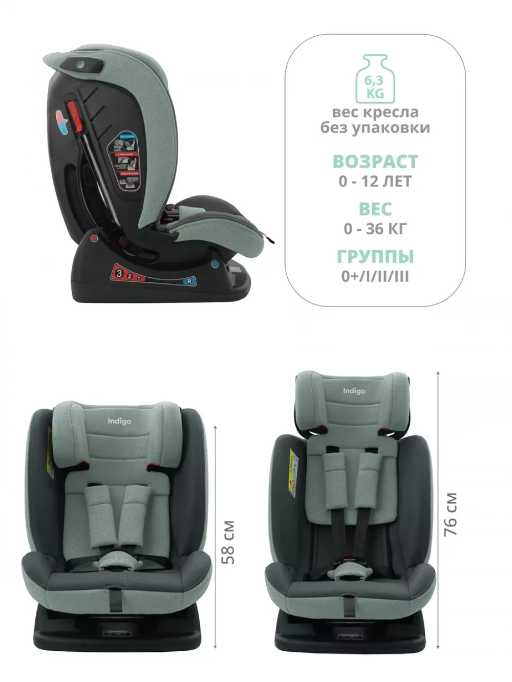 Автокресло Indigo Reflex AY913 0/1/2/3 (0-36 кг) зеленый-серый