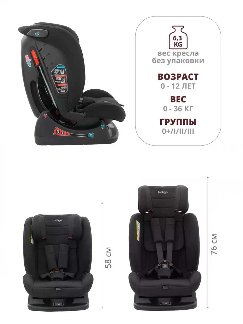 Автокресло Indigo Reflex AY913 0/1/2/3 (0-36 кг) черный