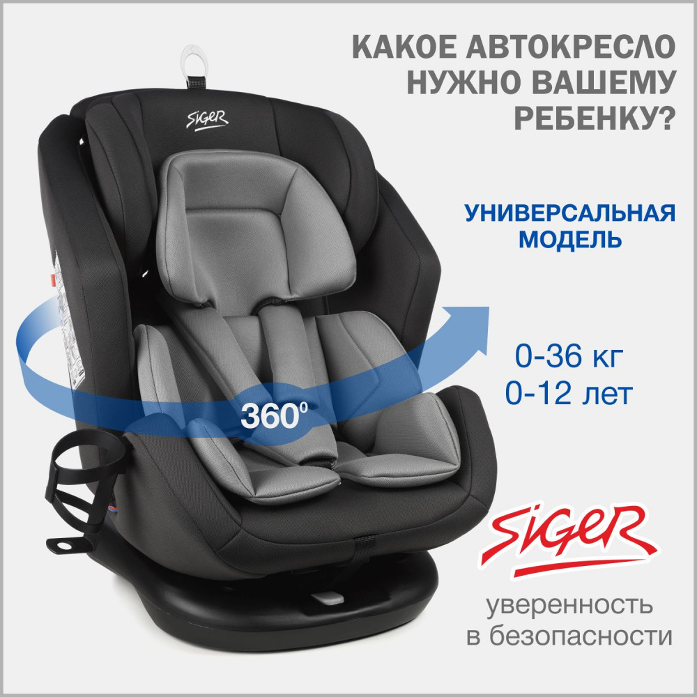 Автокресло Siger Ультра 0/1/2/3 (0-36кг) темно-серый