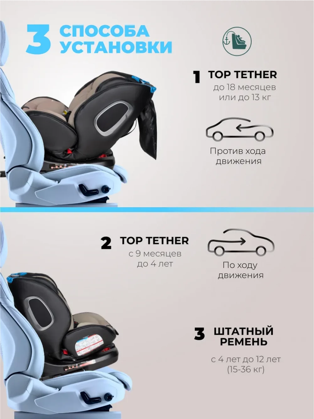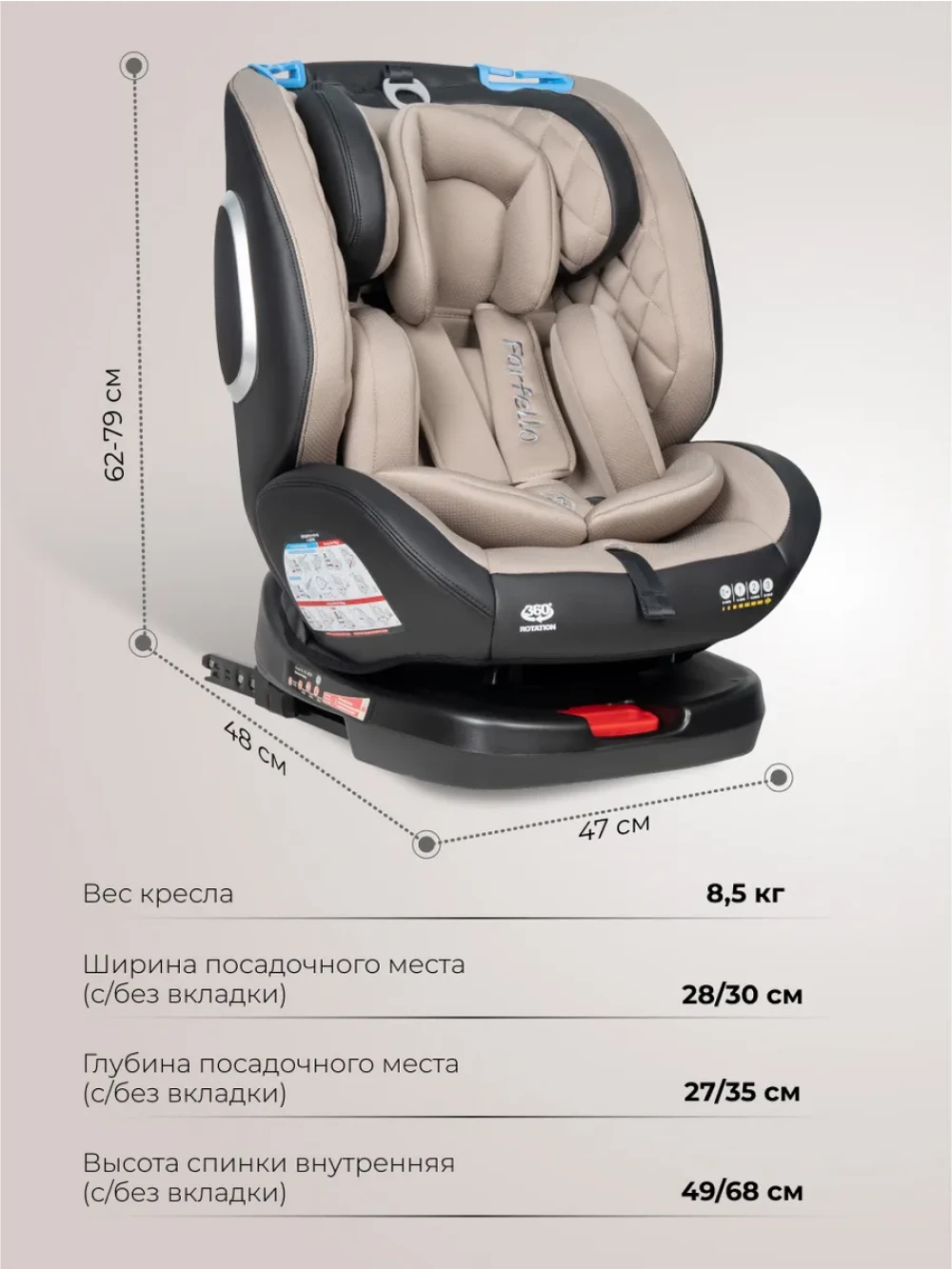 Автокресло Farfello YB102A NEW isofix 0/1/2/3 (0-36кг) Beige/Black