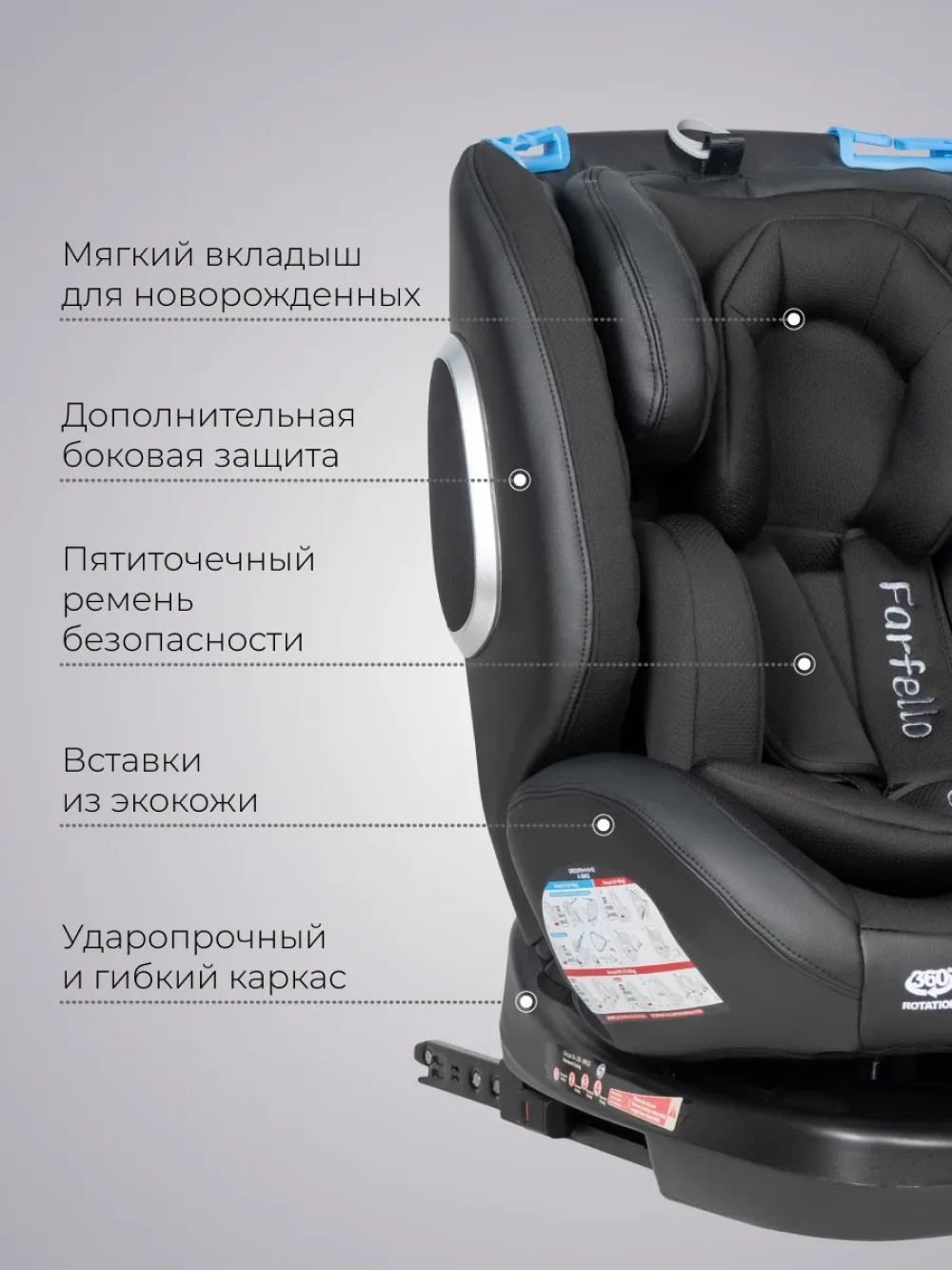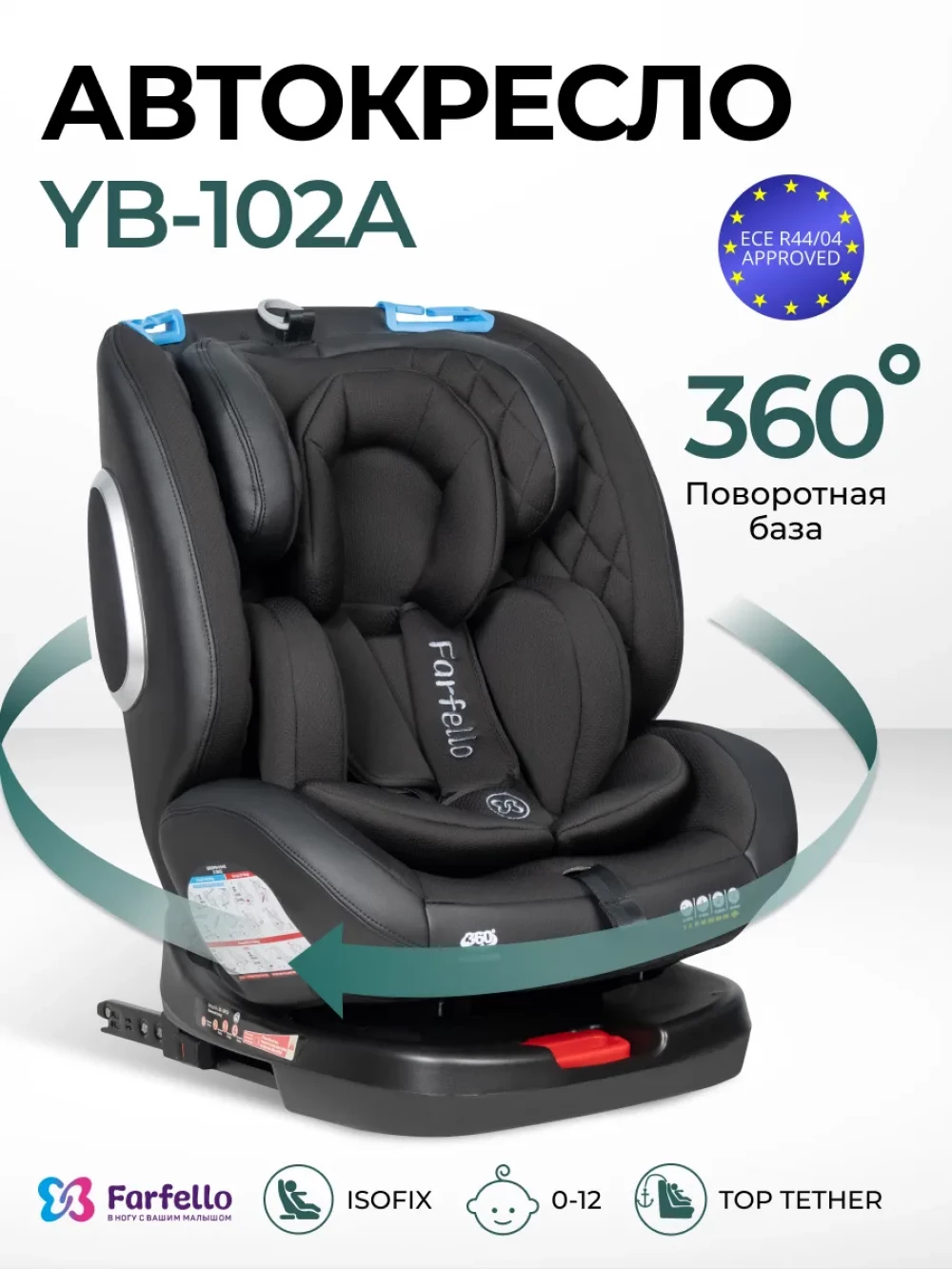 Автокресло Farfello YB102A NEW isofix 0/1/2/3 (0-36кг) Black