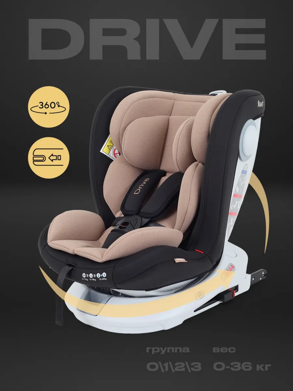 Автокресло Rant Drive isofix LB619 0/1/2/3 (0-36 кг) Beige