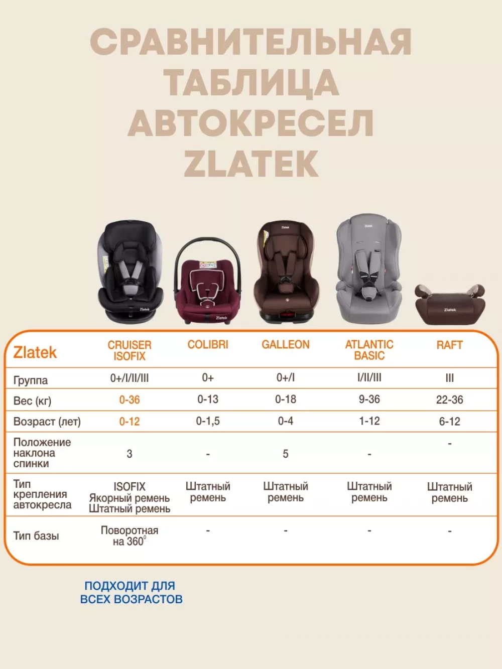Автокресло Zlatek Atlantic ZL513 Basic 1/2/3 (9-36 кг) мокаччино