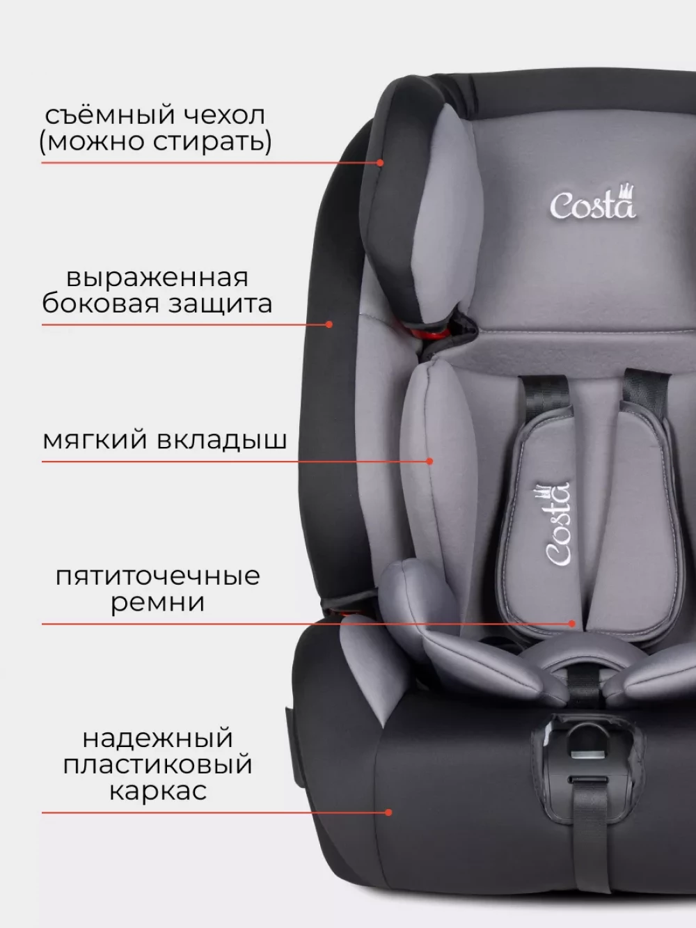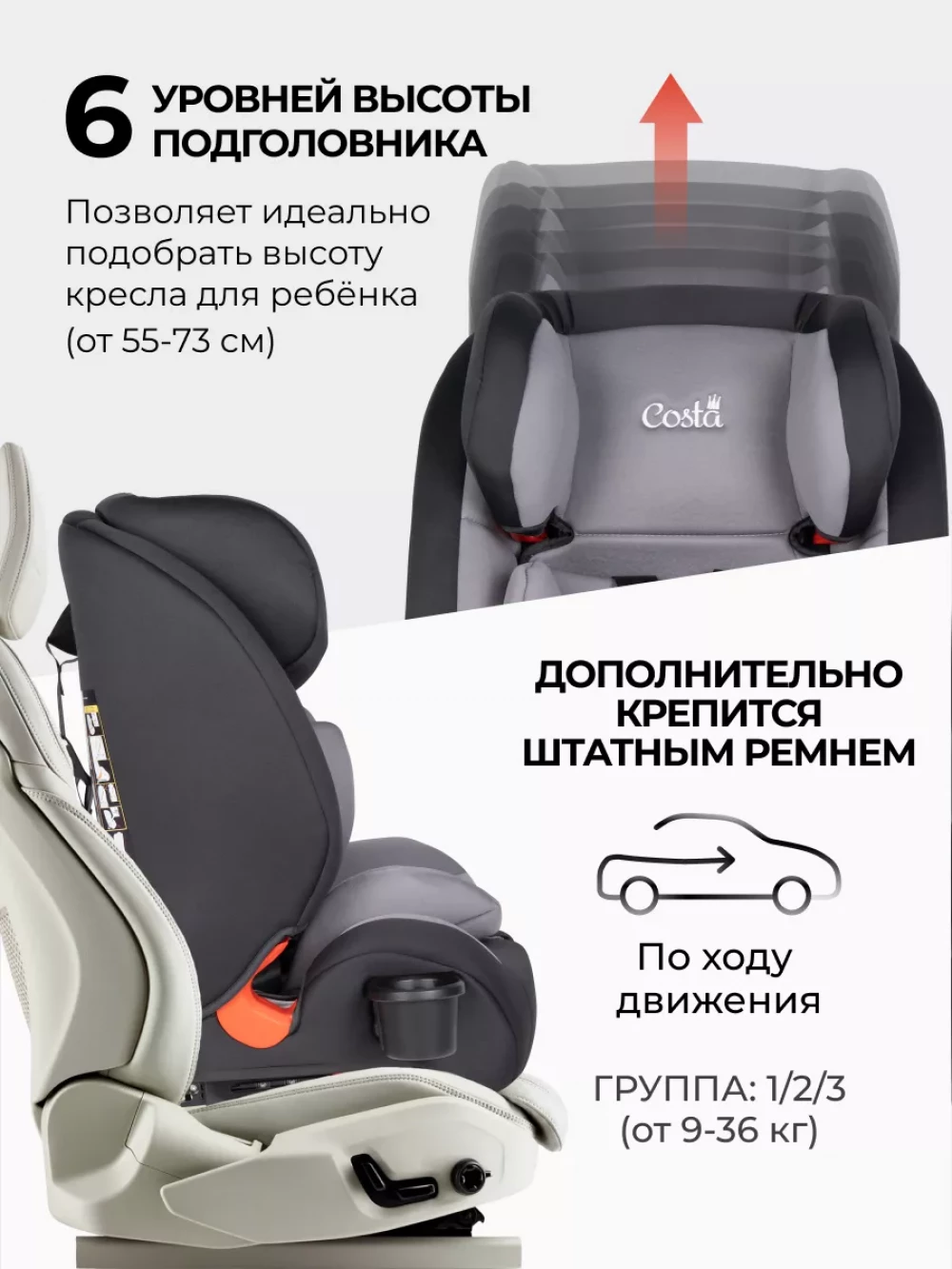 Автокресло Costa HD-02 isofix 1/2/3 (9-36кг) Grey/black