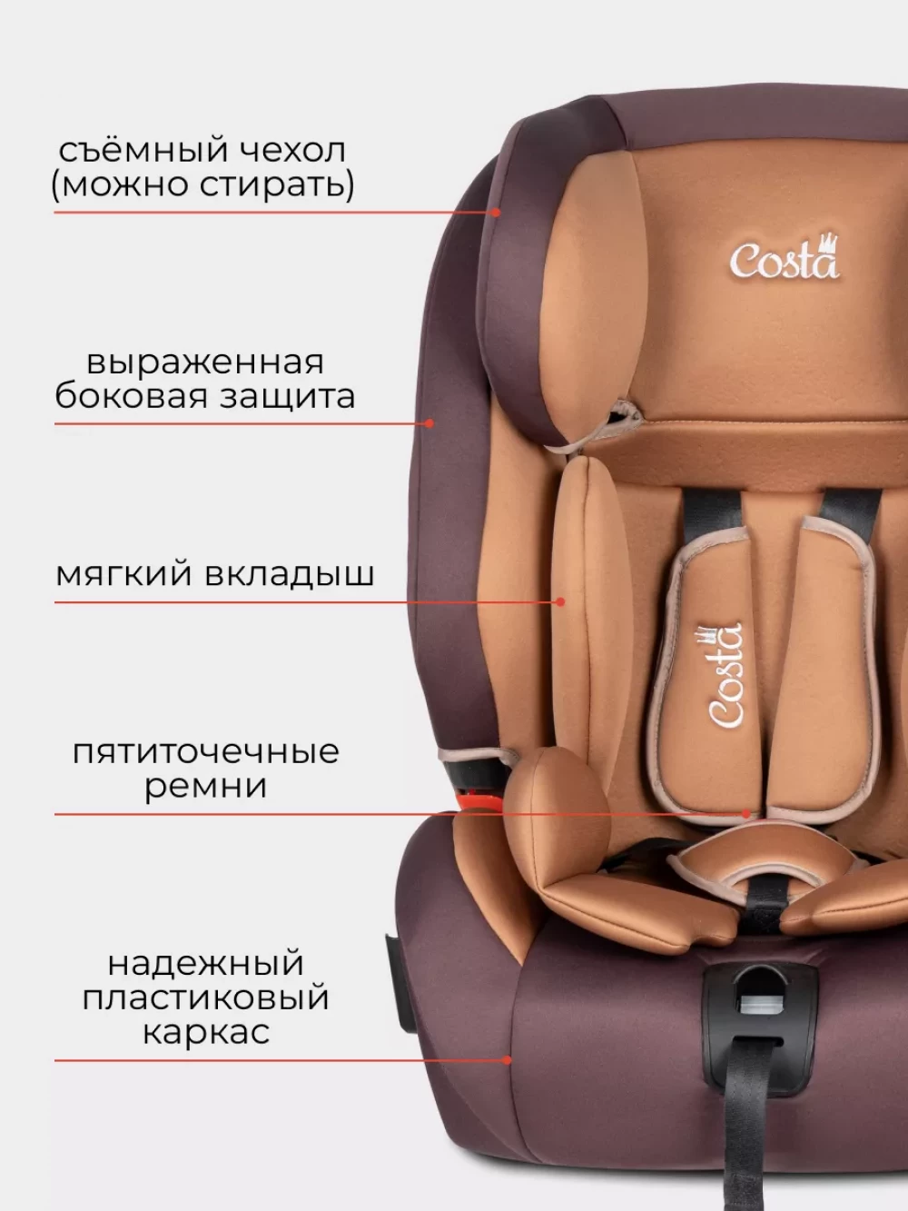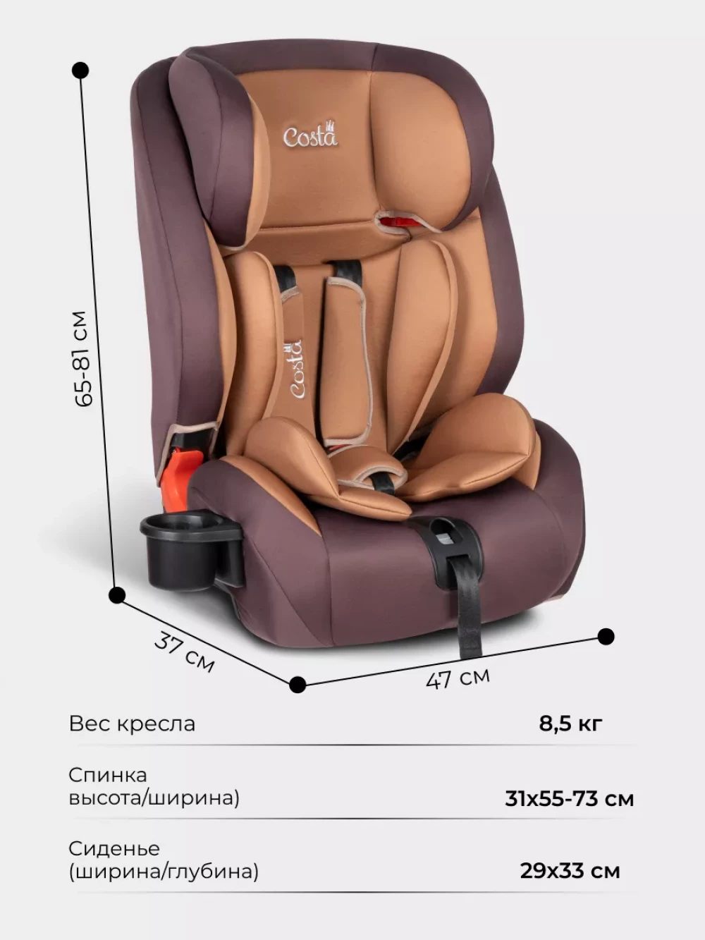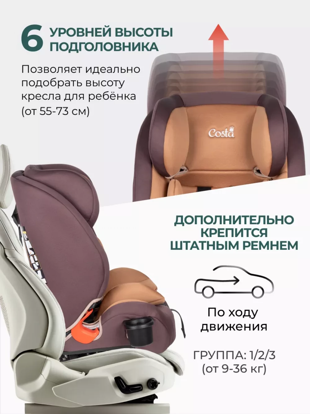 Автокресло Costa HD-02 isofix 1/2/3 (9-36кг) Brown/coffee
