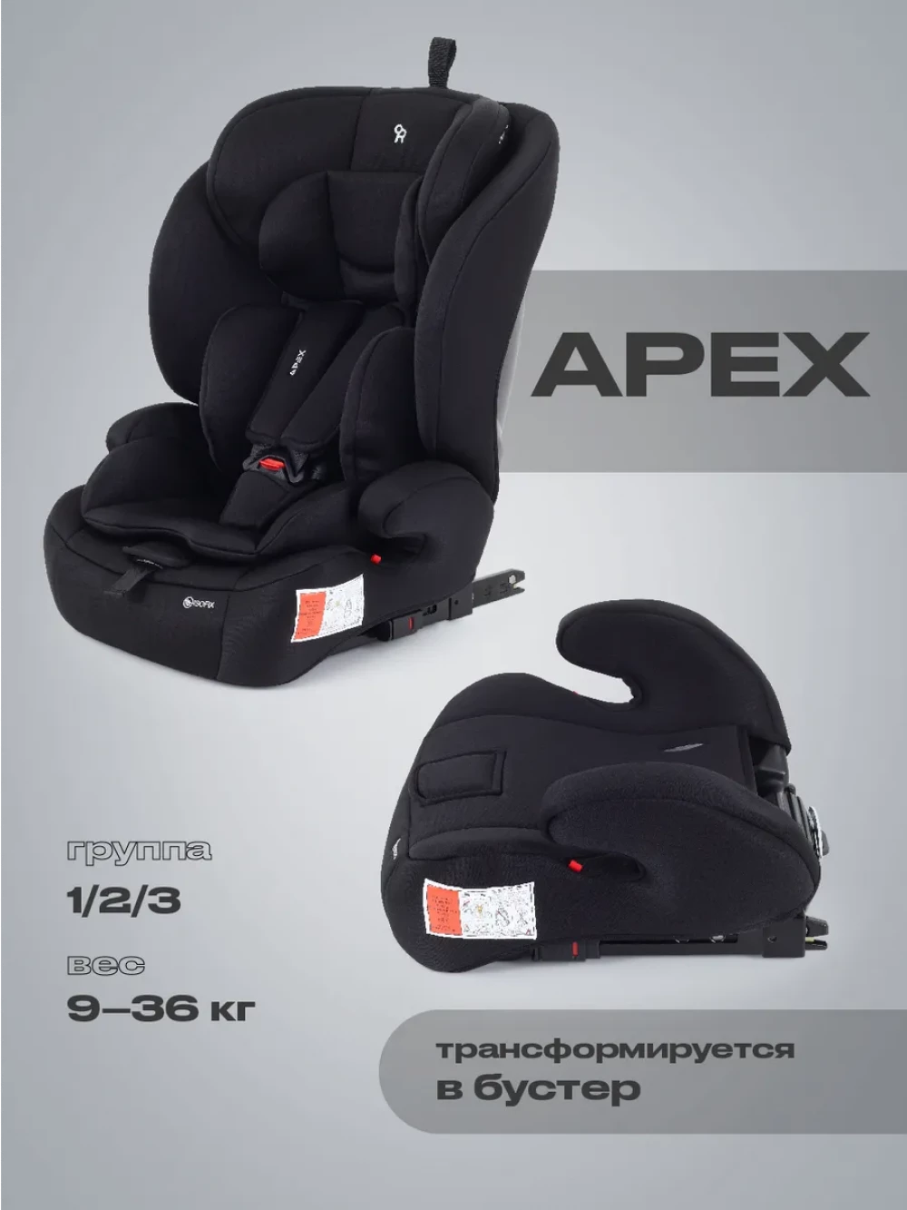 Автокресло Rant Basic ZY27F Apex 1/2/3 (9-36 кг) Black
