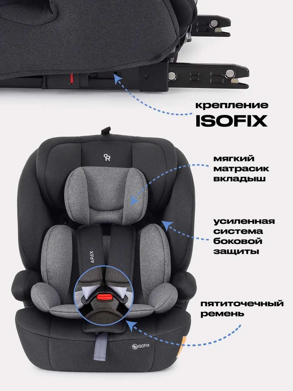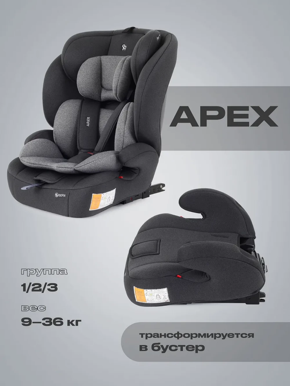 Автокресло Rant Basic ZY27F Apex 1/2/3 (9-36 кг) Grey