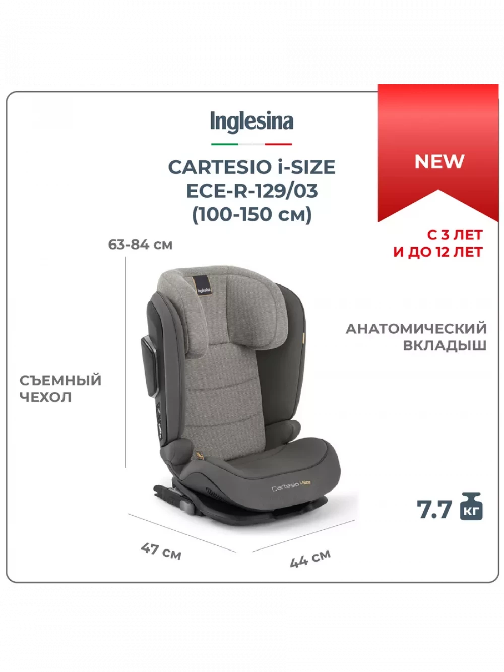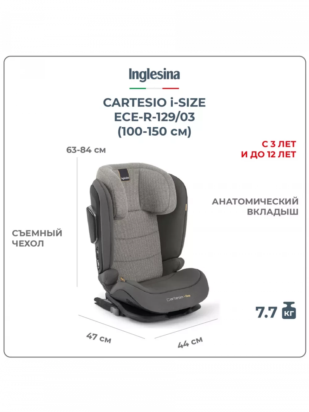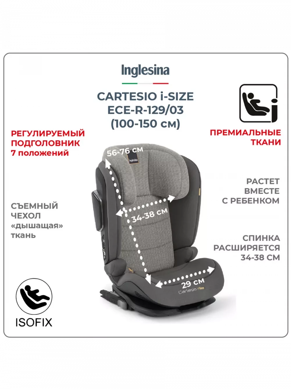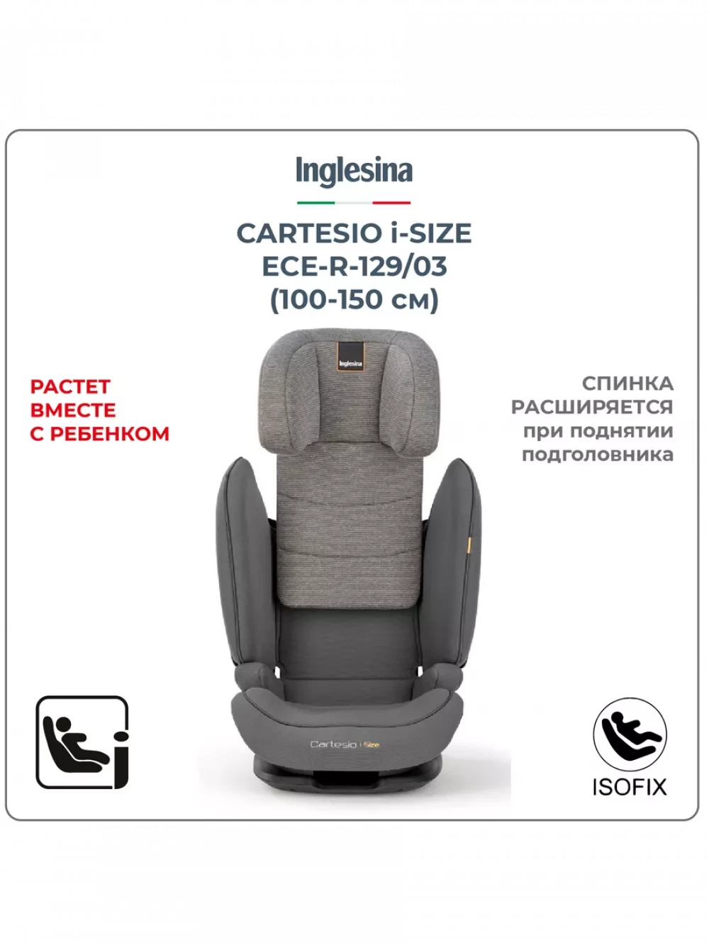 Автокресло Inglesina Cartesio i-Size 2/3 (15-36 кг) Stone Grey