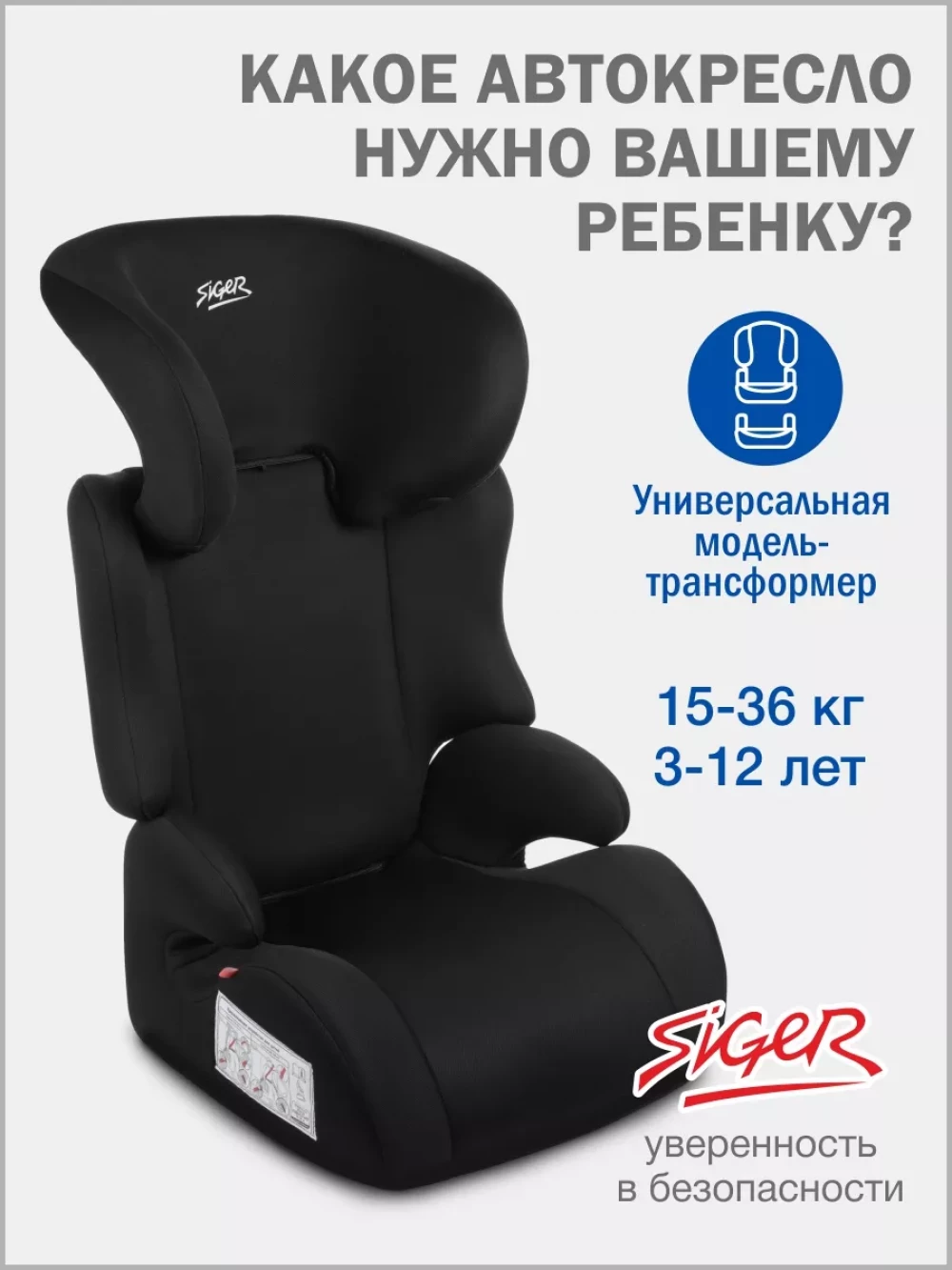 Автокресло Siger Смарт 2/3 (15-36кг) черный