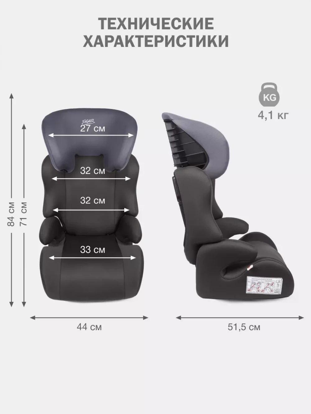 Автокресло Siger Смарт 2/3 (15-36кг) маренго