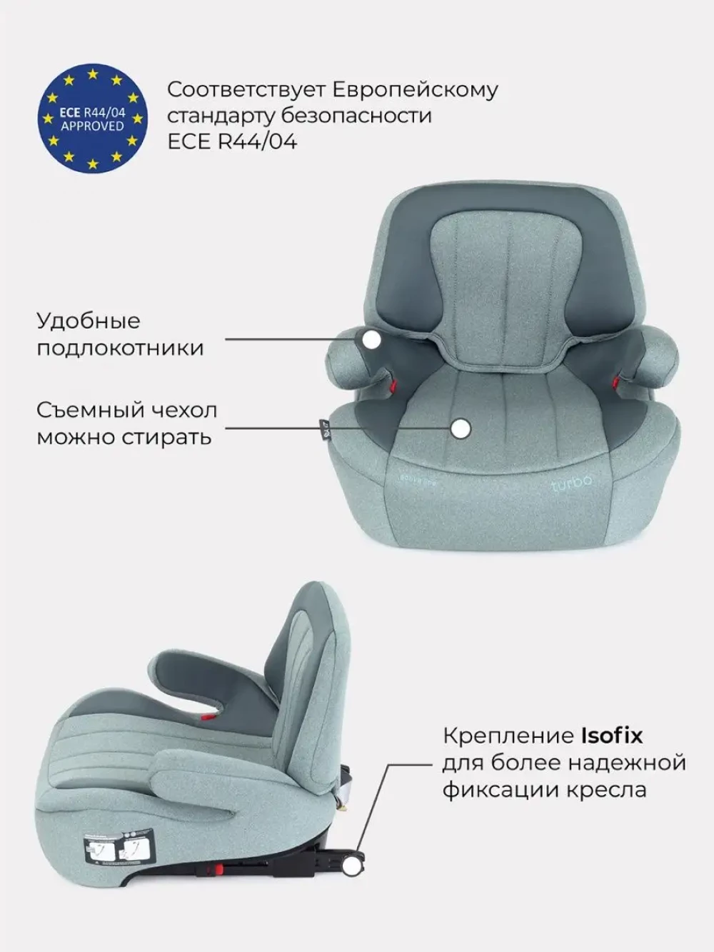 Бустер Rant Turbo AY313 Isofix Active 2/3 (2-36 кг) Green