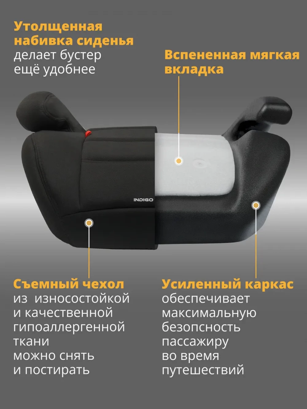 Бустер Indigo Cross 3 (22-36кг) черный