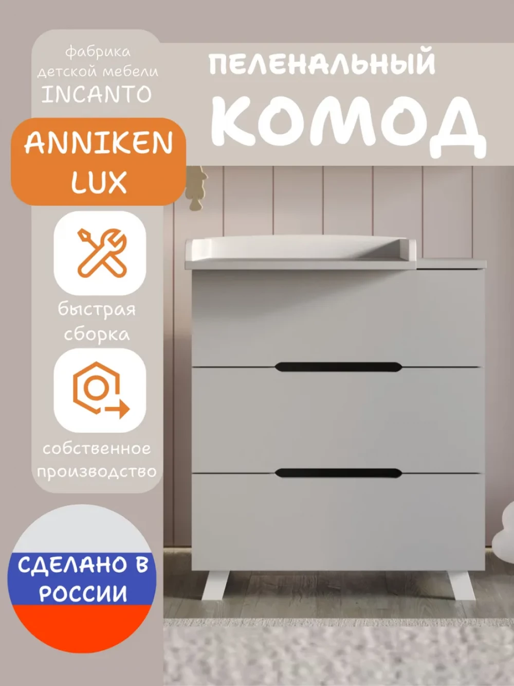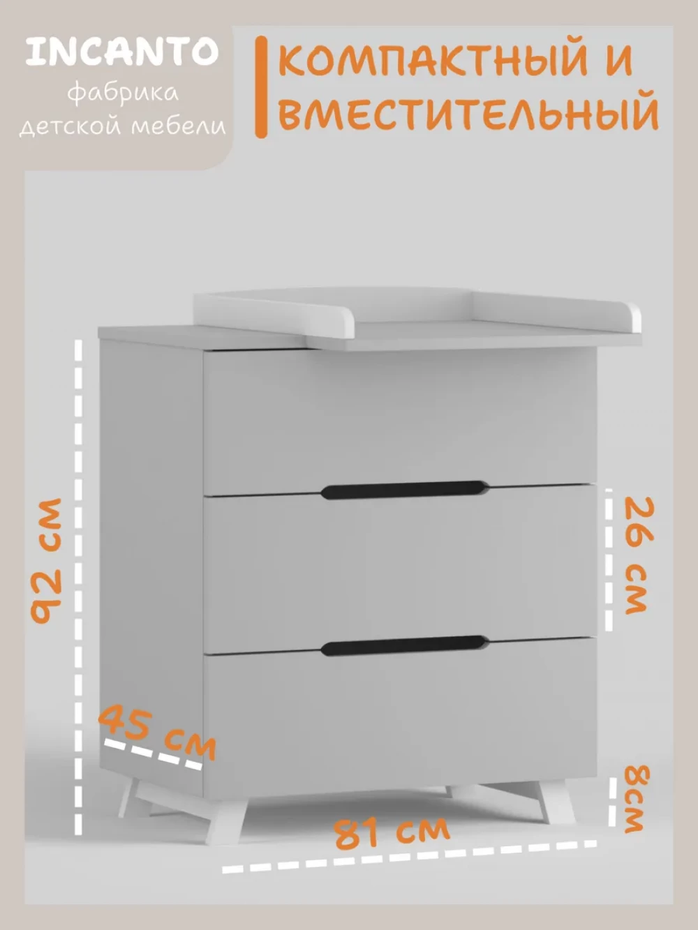 Комод Incanto Anniken LUX 800/3 ЛДСП серый/белый