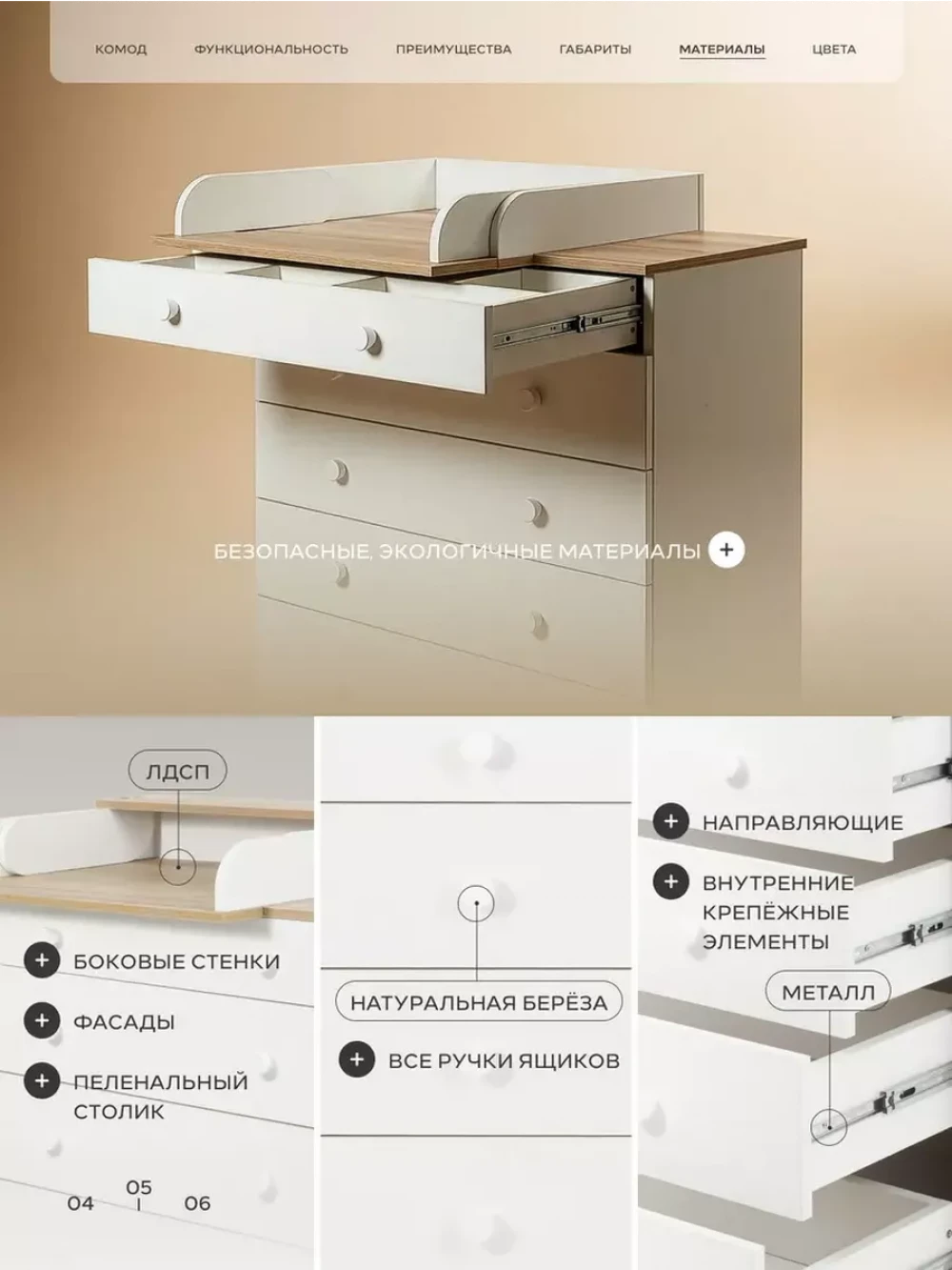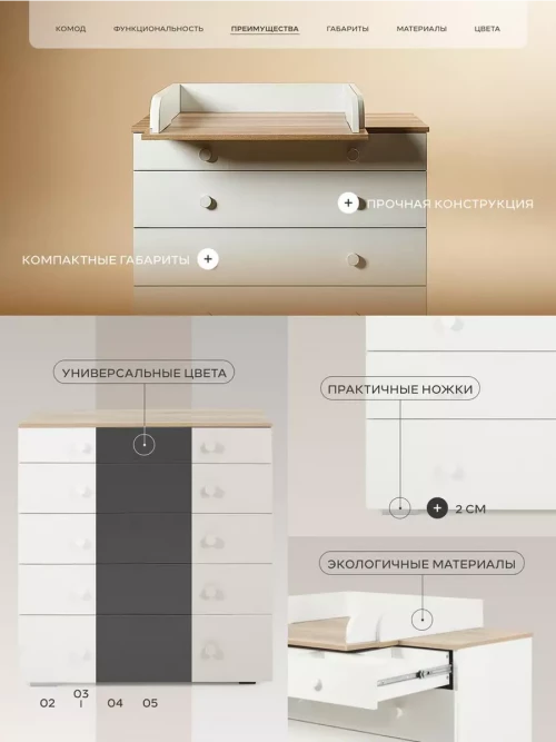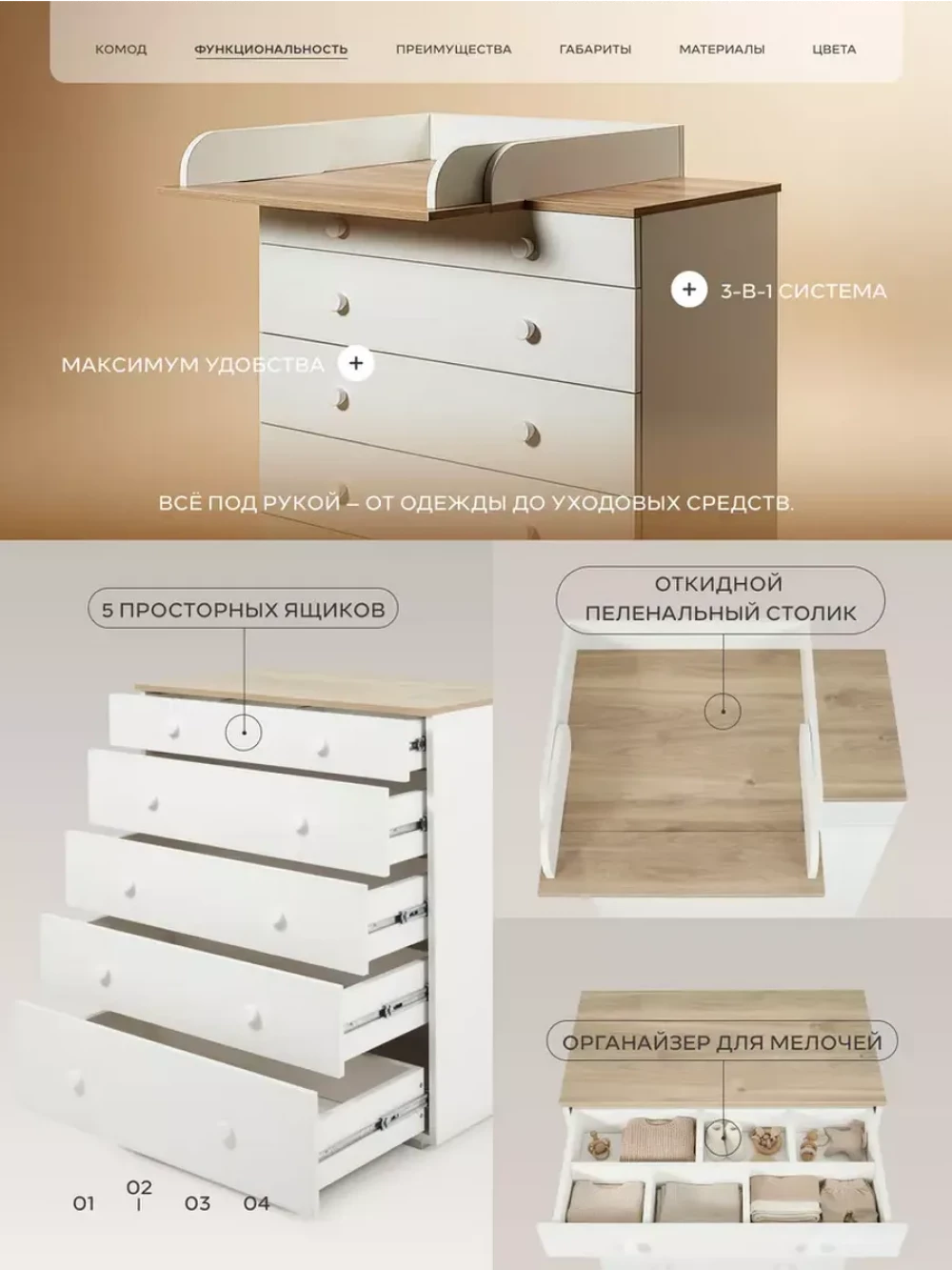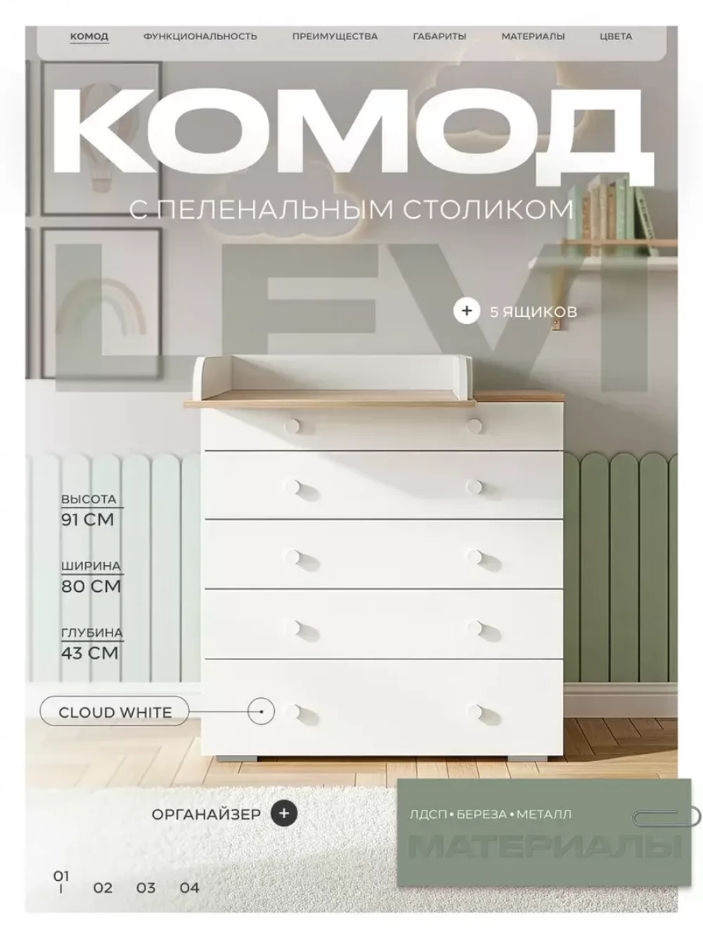 Комод Rant Levi 80 см с органанайзером Cloud White