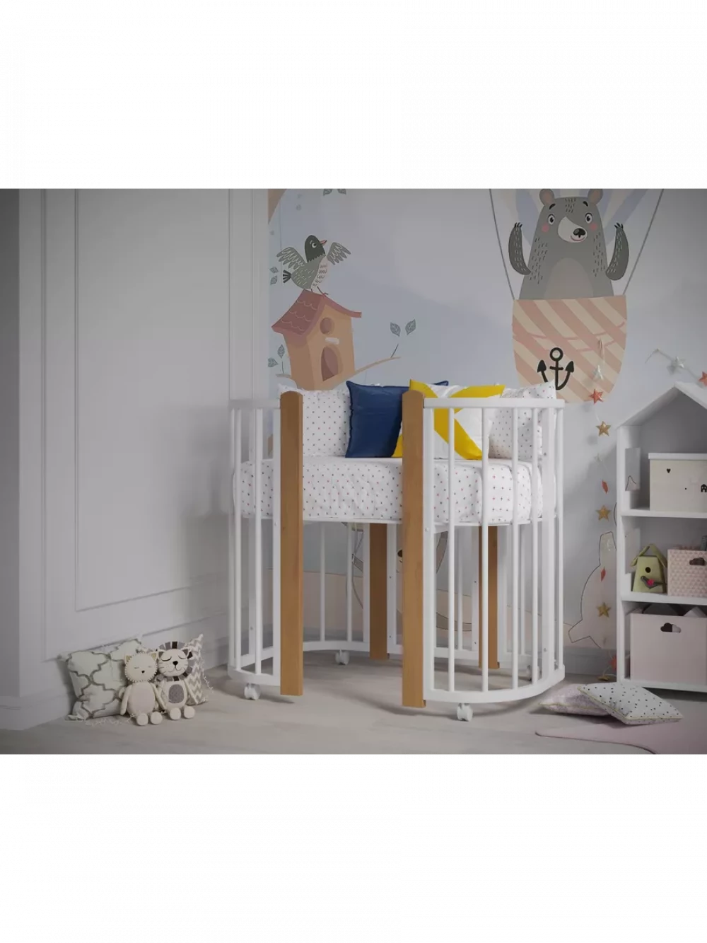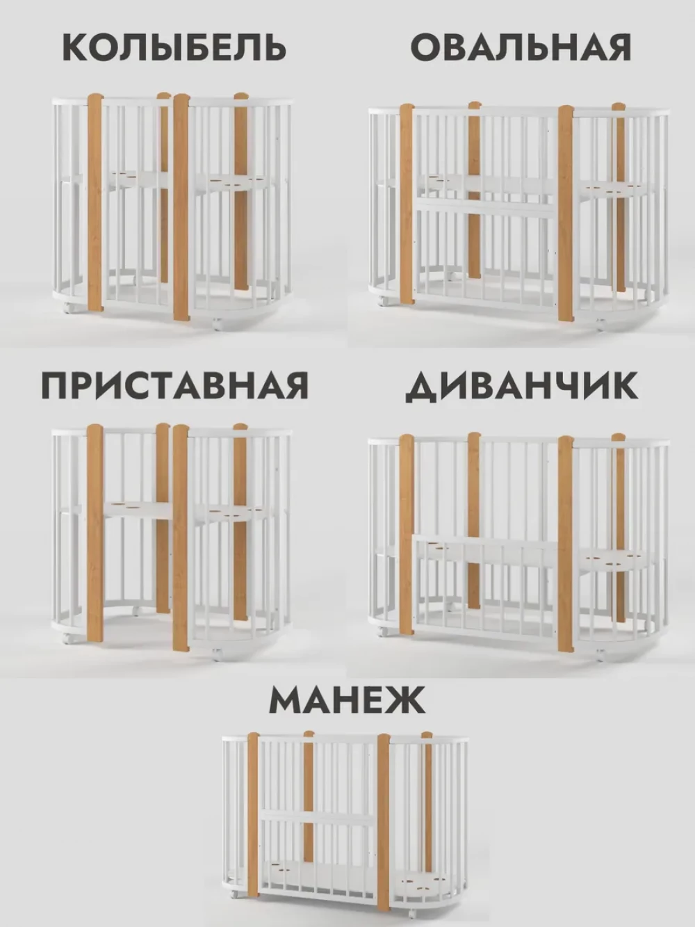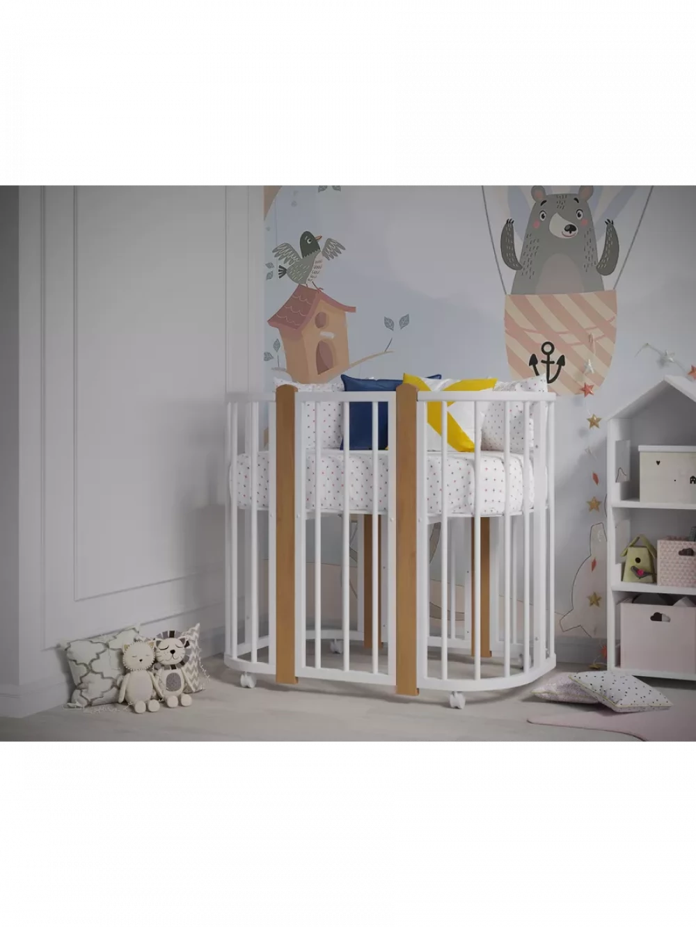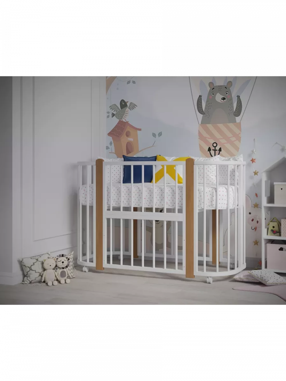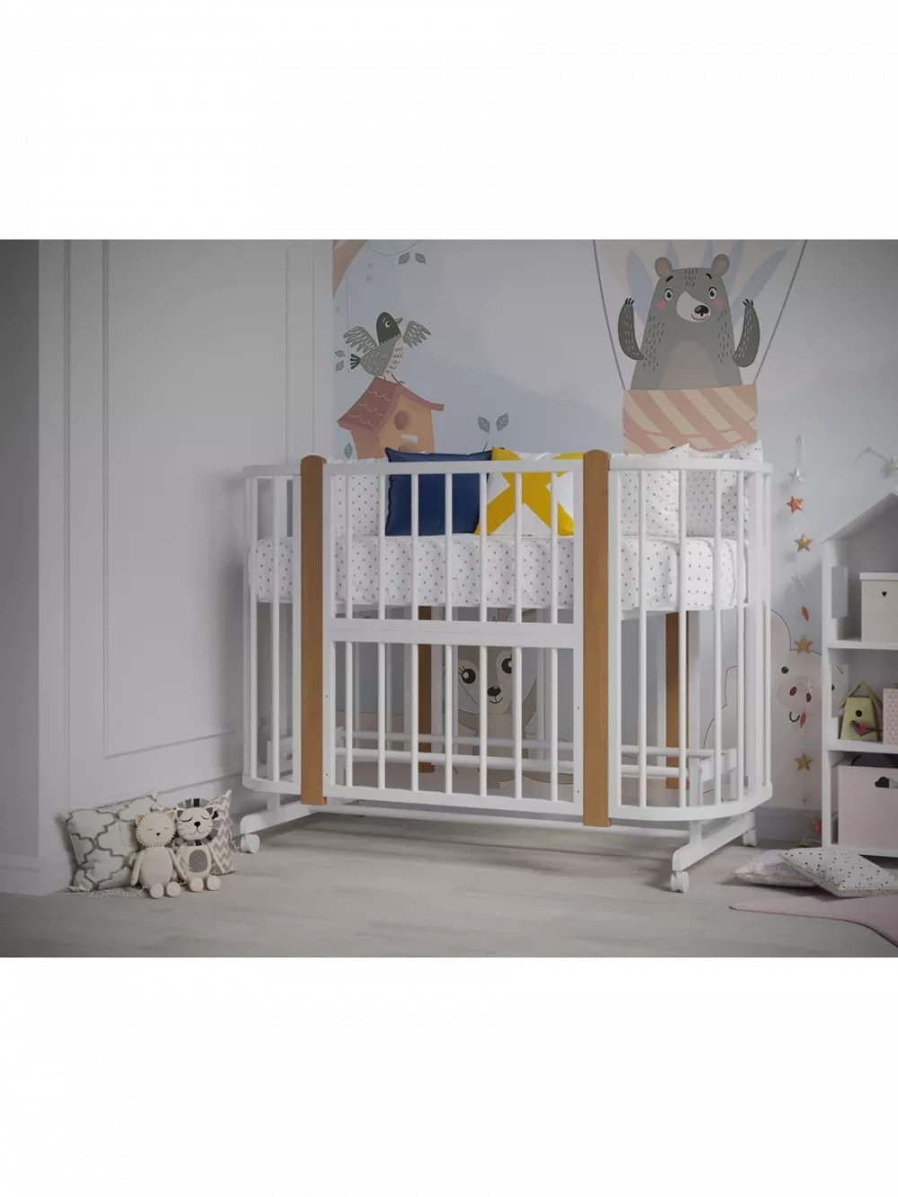 Кроватка-трансформер Incanto Nuvola LUX без маятника 120*60 (закругленный) белый/бук
