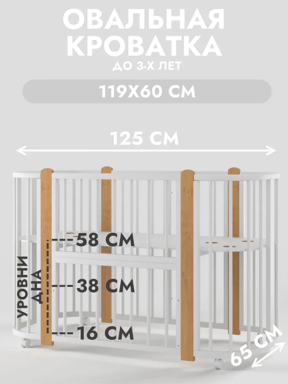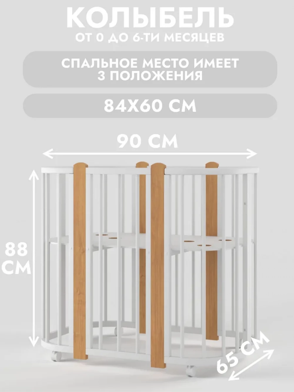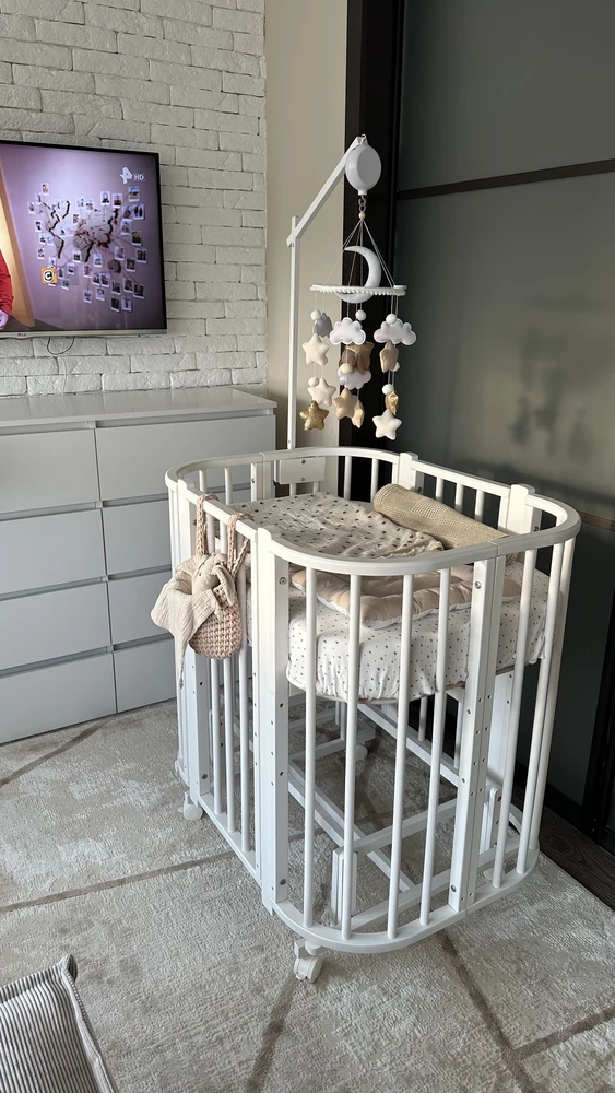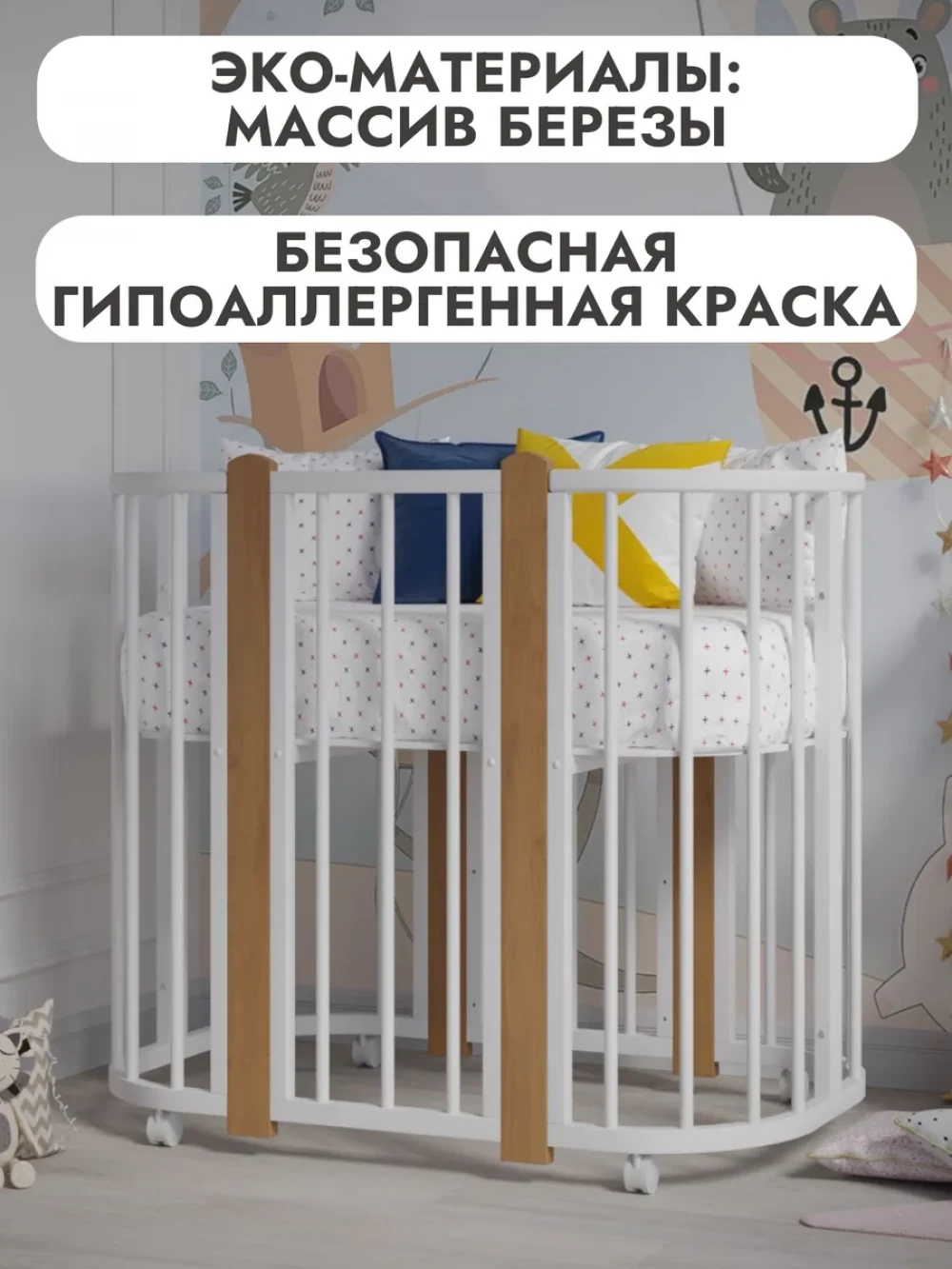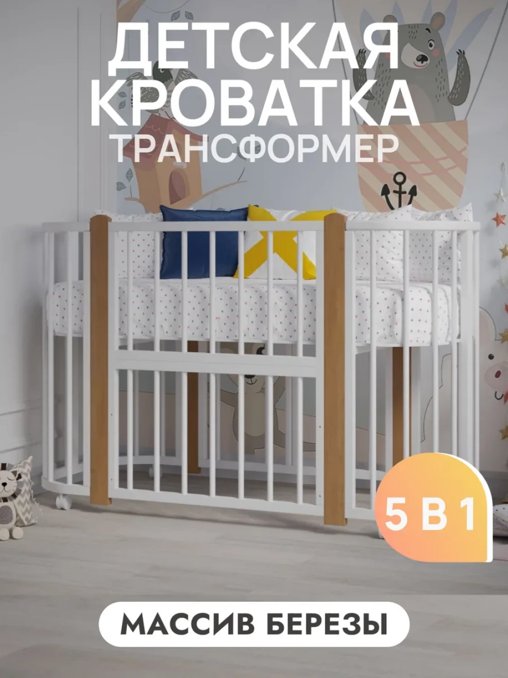 Кроватка-трансформер Incanto Nuvola LUX без маятника 120*60 (закругленный) белый/бук