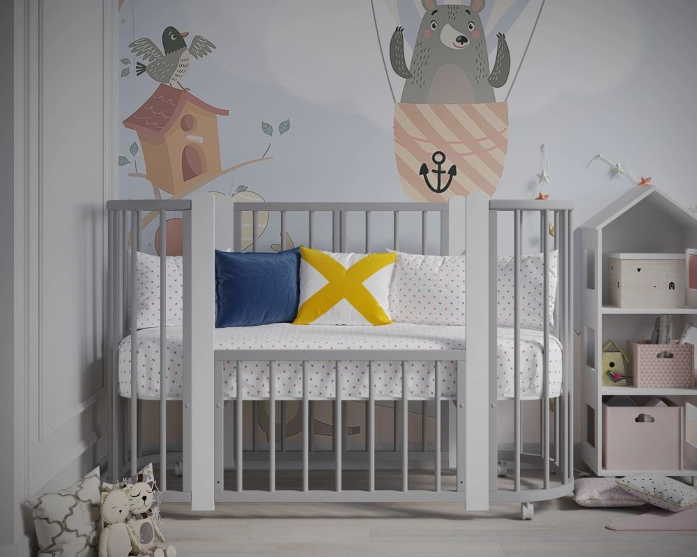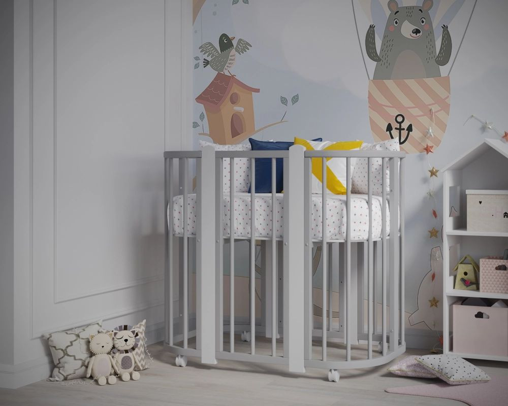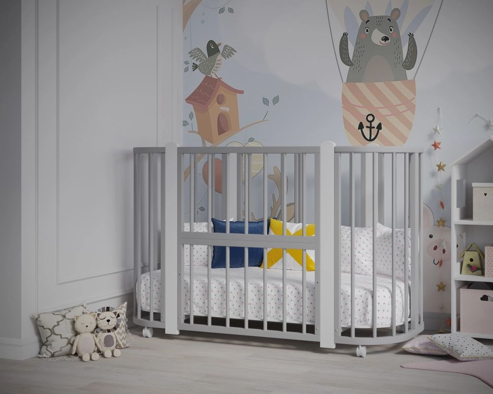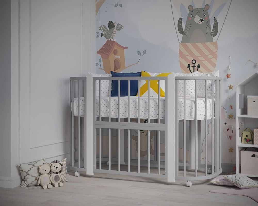 Кроватка-трансформер Incanto Nuvola LUX без маятника 120*60 (закругленный) серый/белый