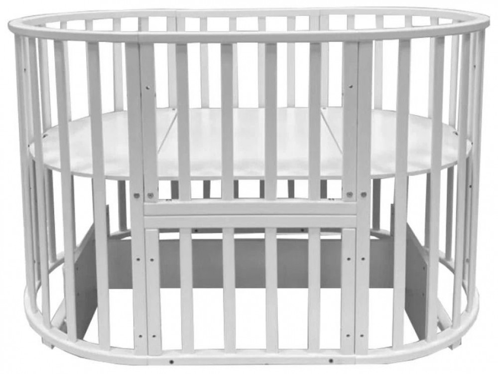 Кроватка-трансформер Incanto Stella 11 в 1 с маятником 125*75 (овал) и 75*75 (круг) белый