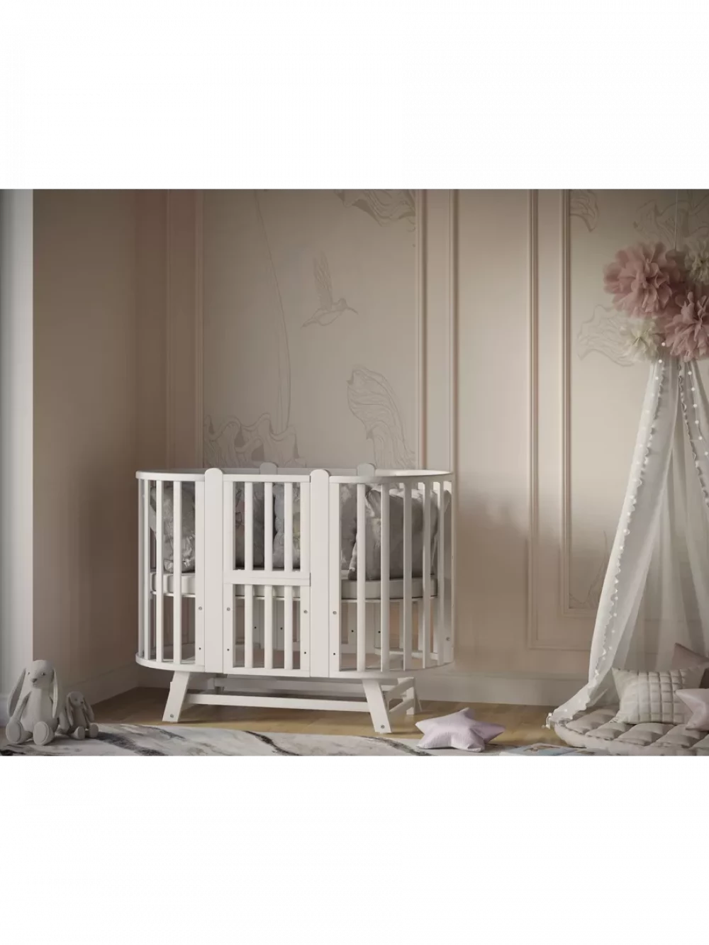 Кроватка-трансформер Incanto Verona 11 в 1 с маятником 125*75 (овал) и 75*75 (круг) белый/белый