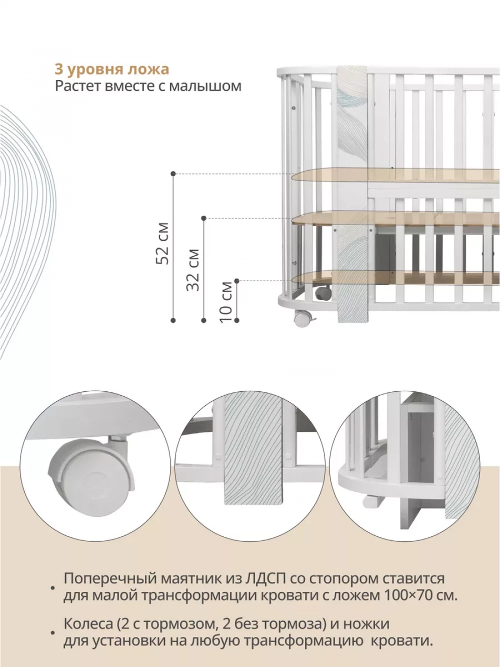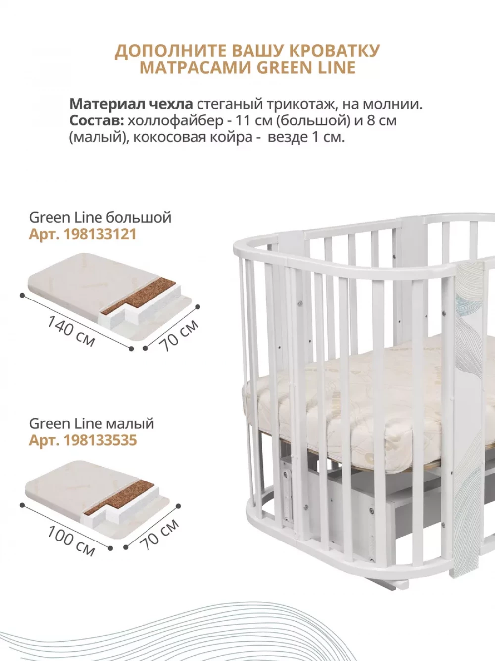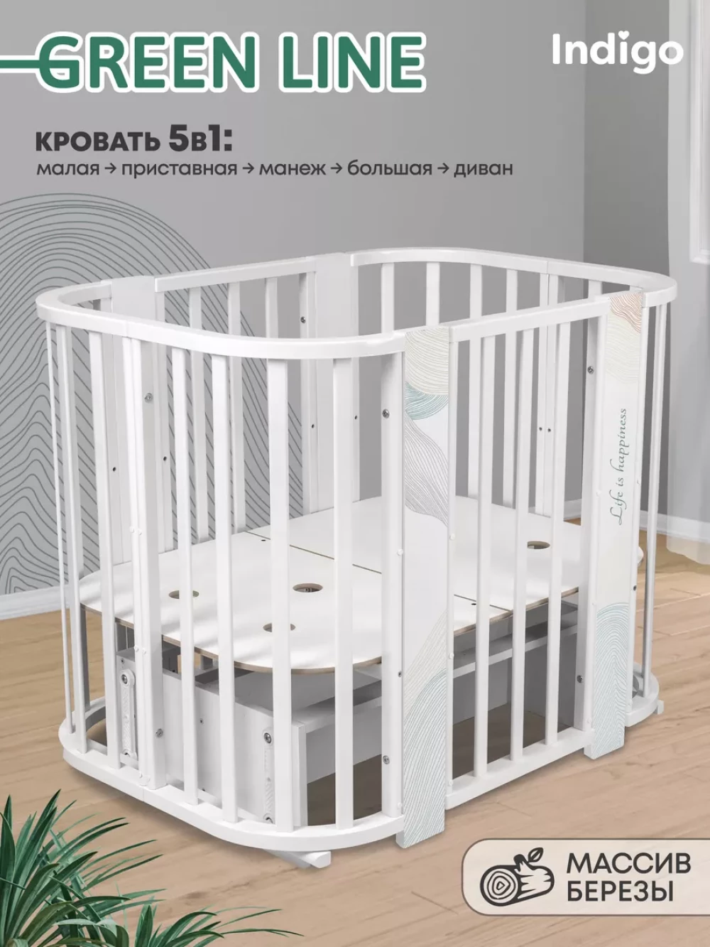 Кроватка-трансформер Indigo Green Line 5 в 1 с маятником 100*70 / 140*70 (закругленный) волна