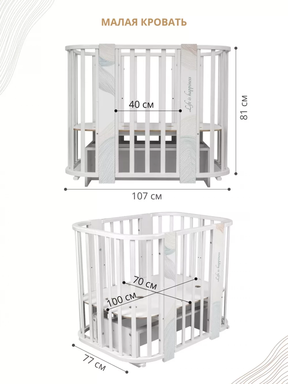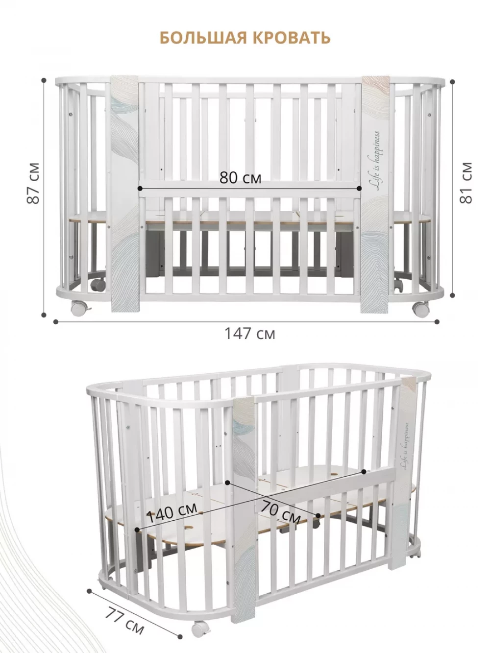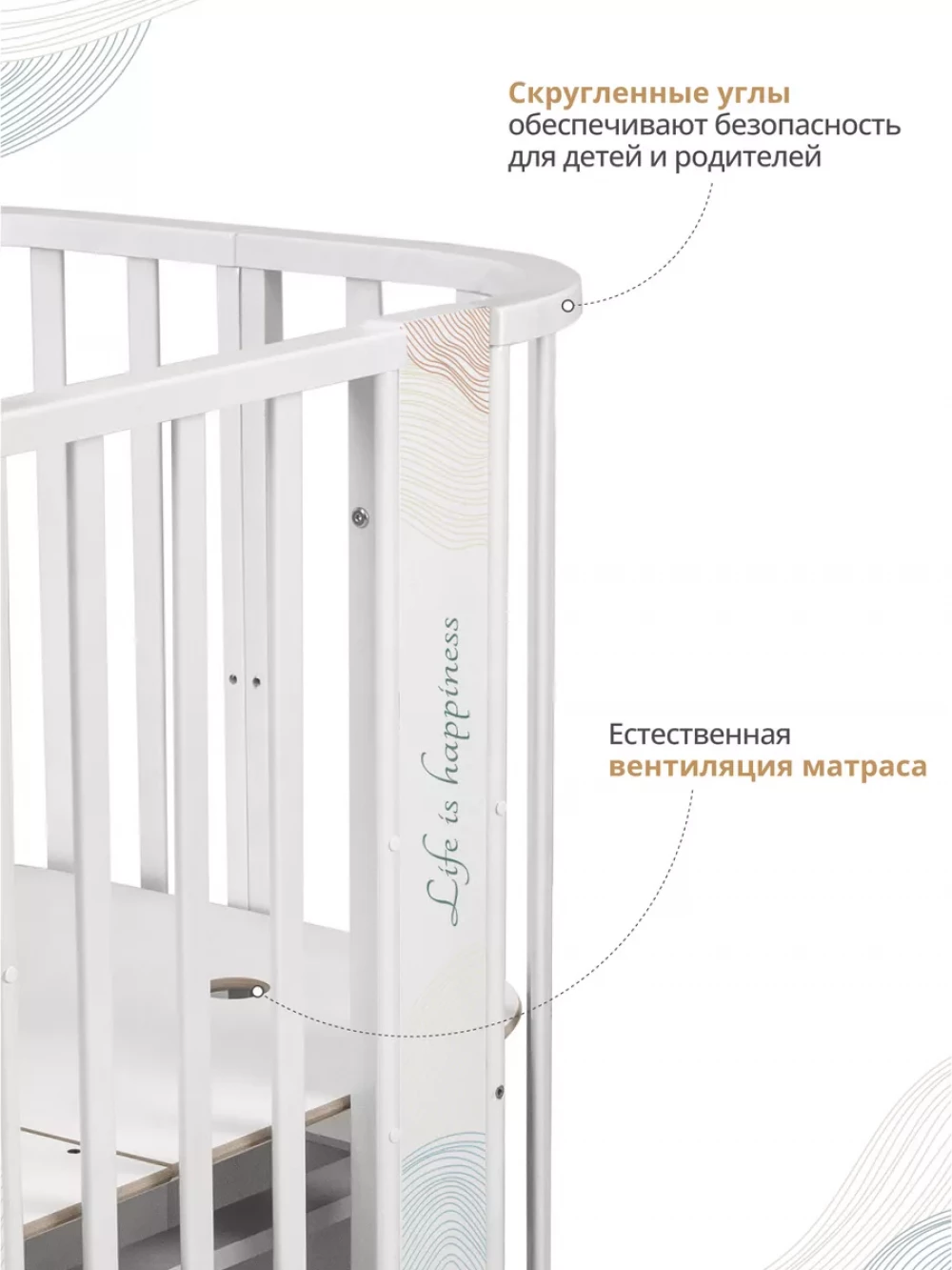 Кроватка-трансформер Indigo Green Line 5 в 1 с маятником 100*70 / 140*70 (закругленный) волна