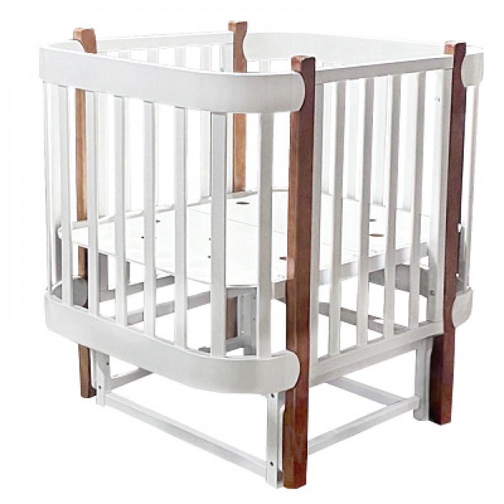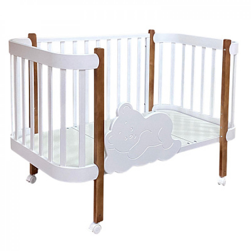 Кроватка-трансформер Antel Solnyshko 3 в 1 с маятником 90*70 / 140*70 (закругленный) белый/бук