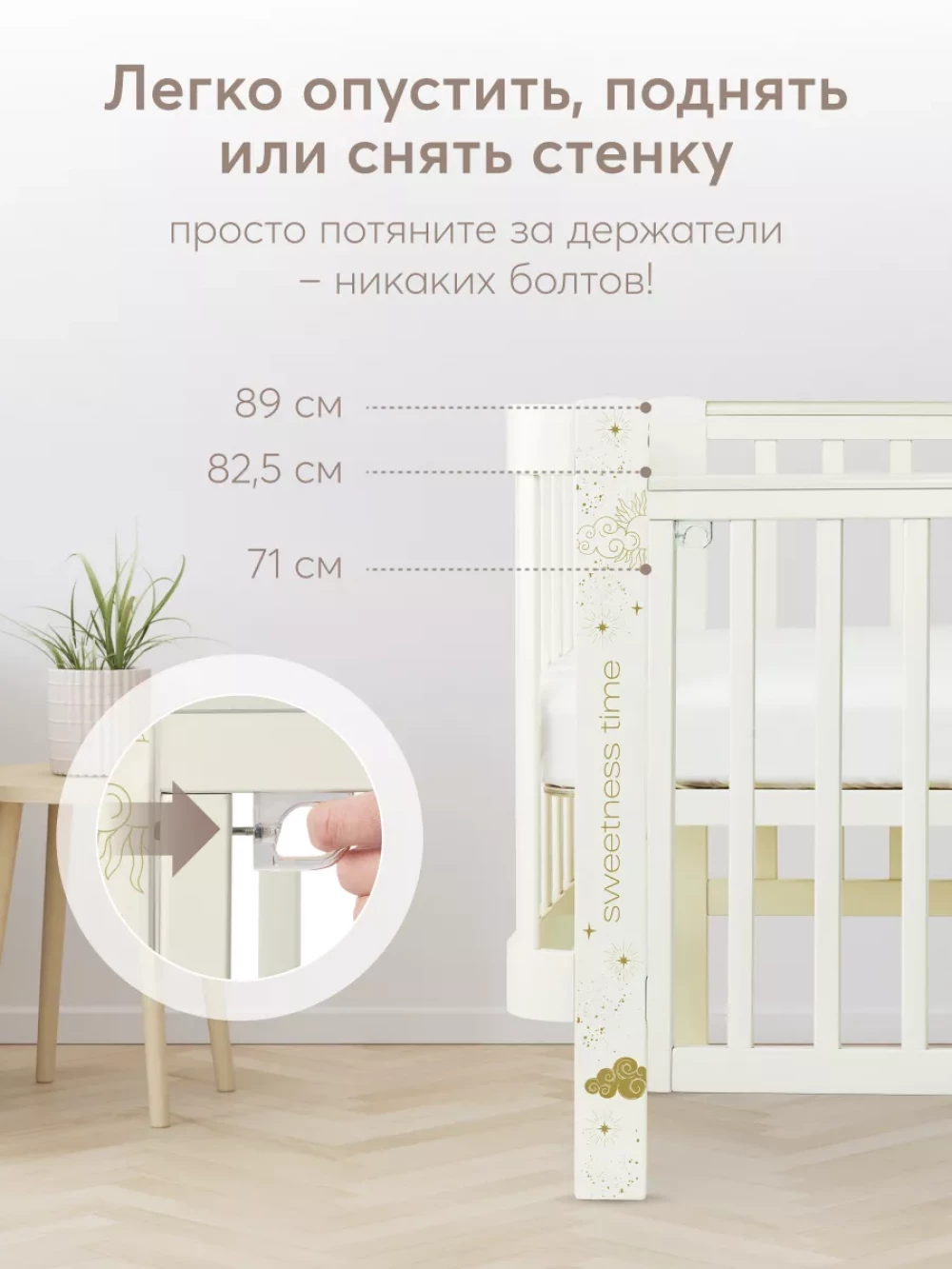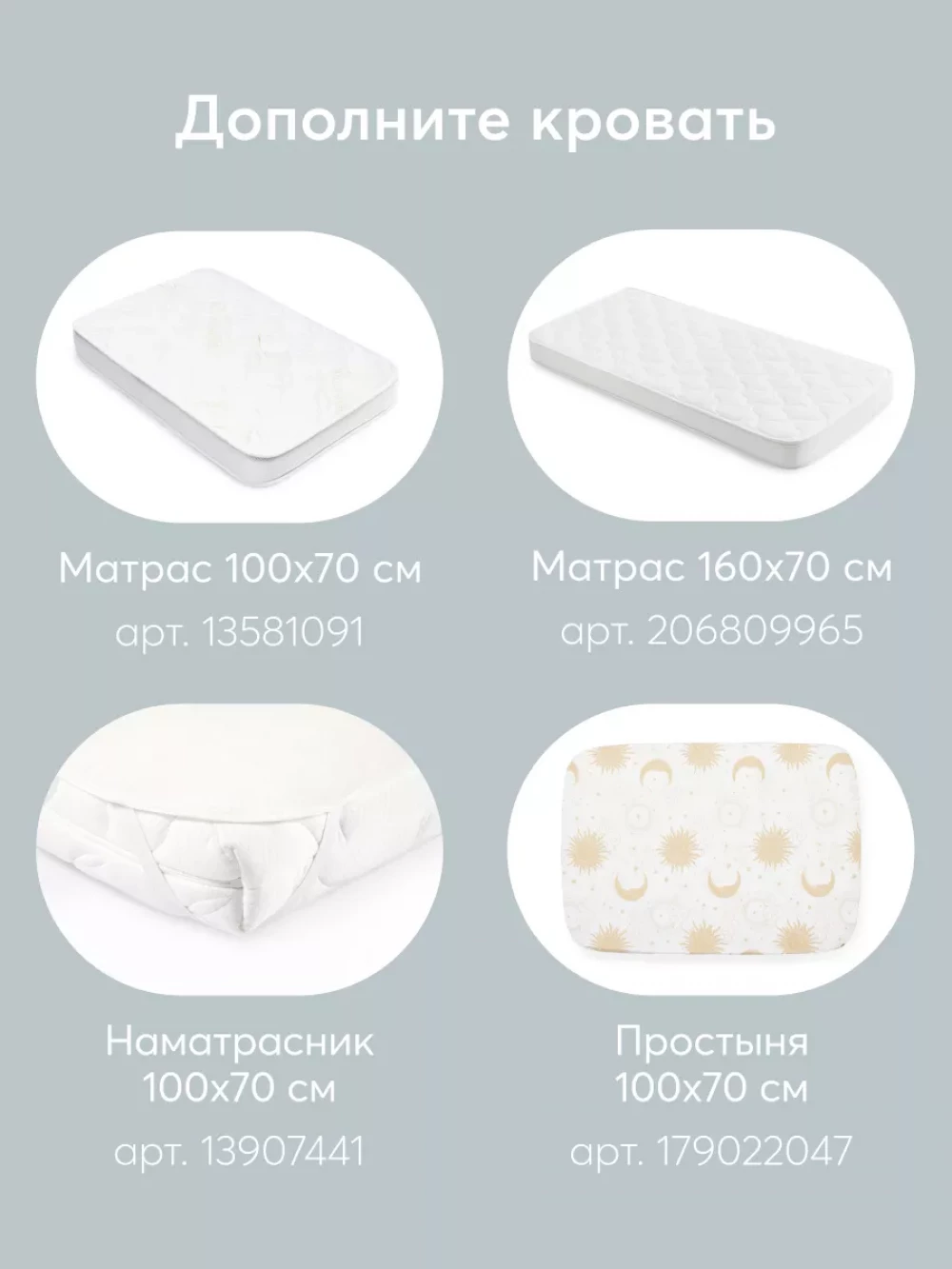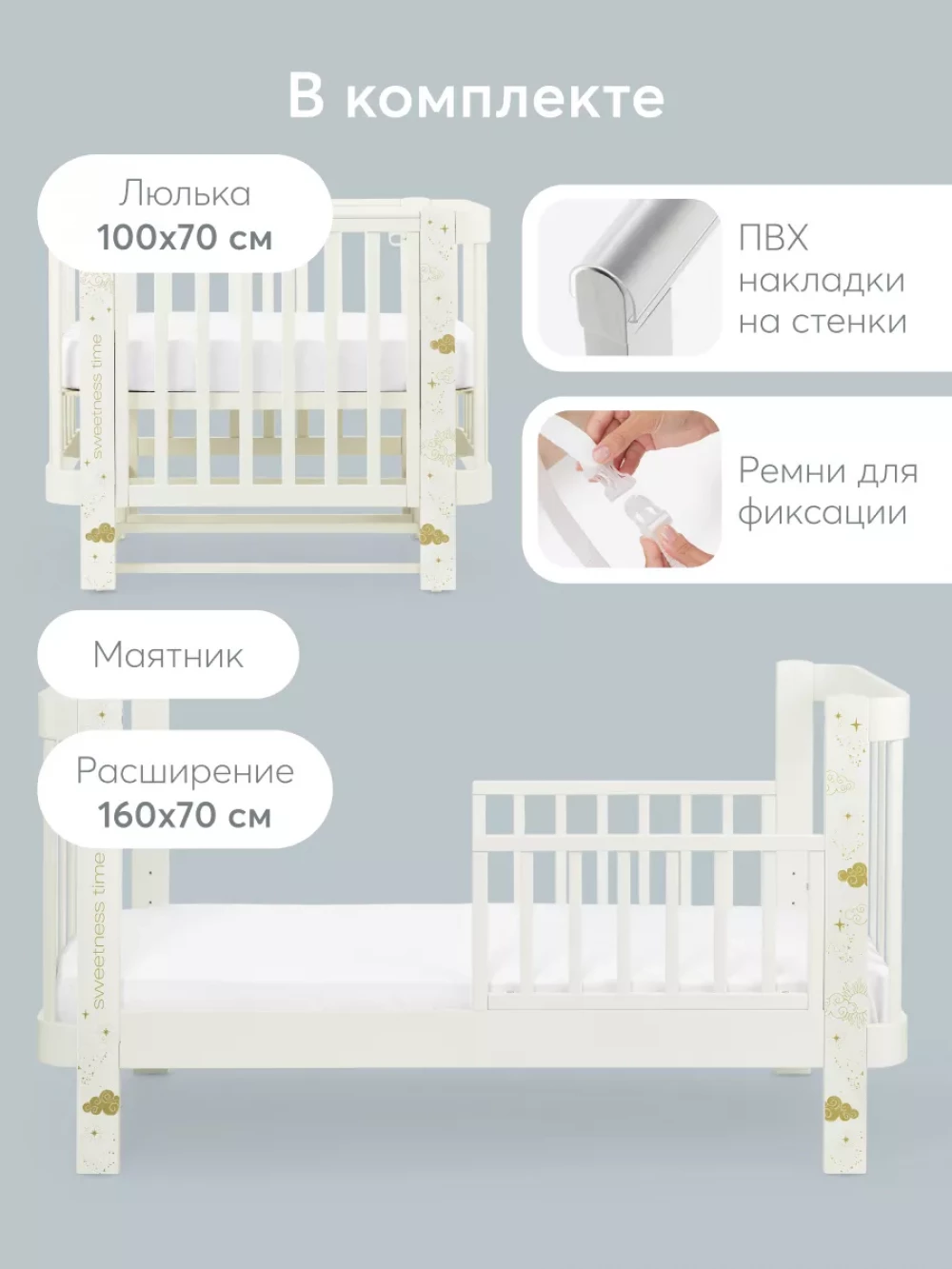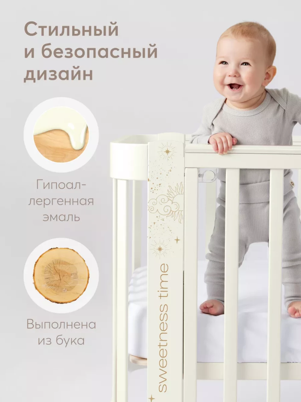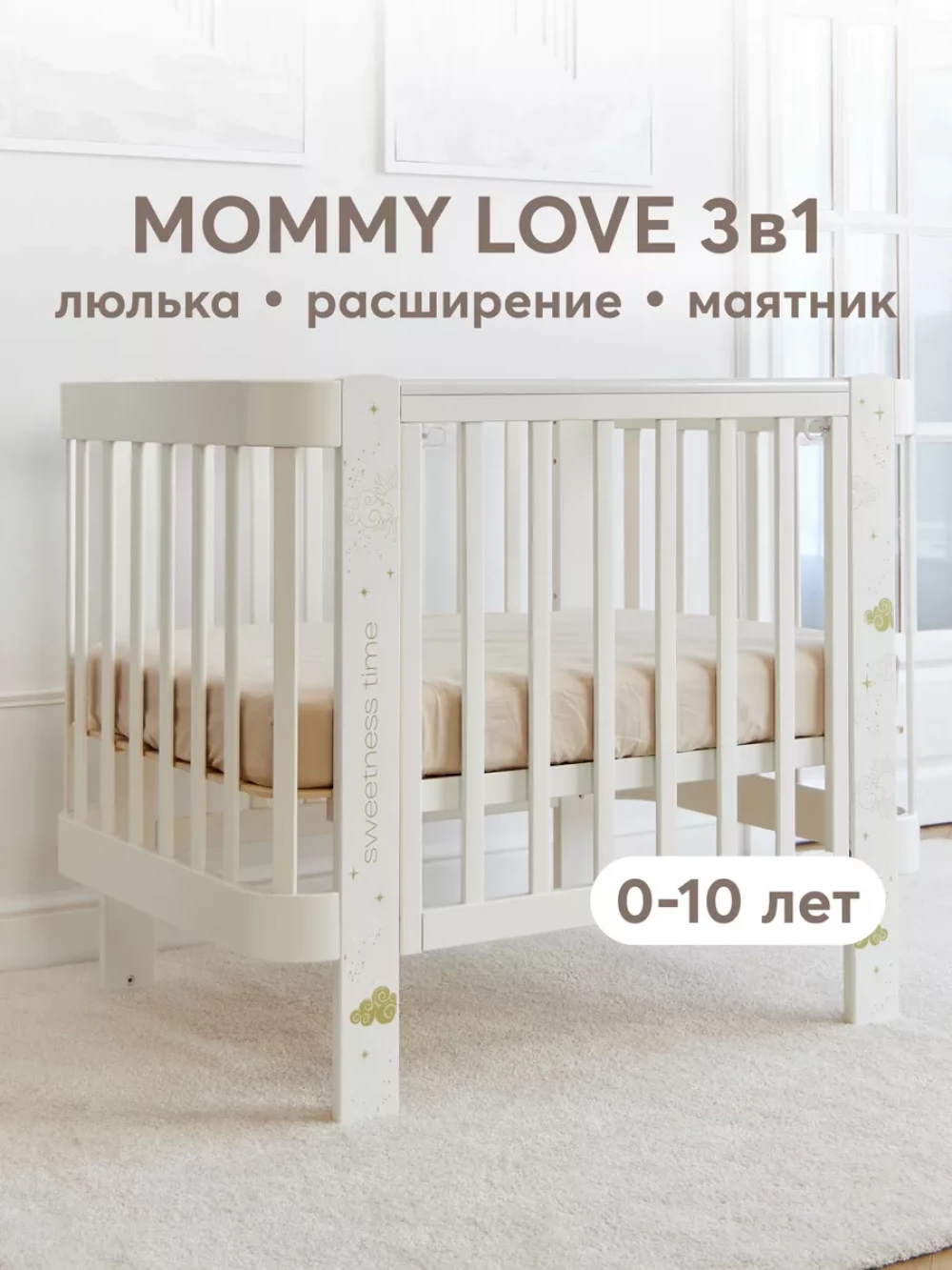 Кроватка-трансформер Happy Baby Mommy Love 160*70 и 100*70 (закругленный) milk