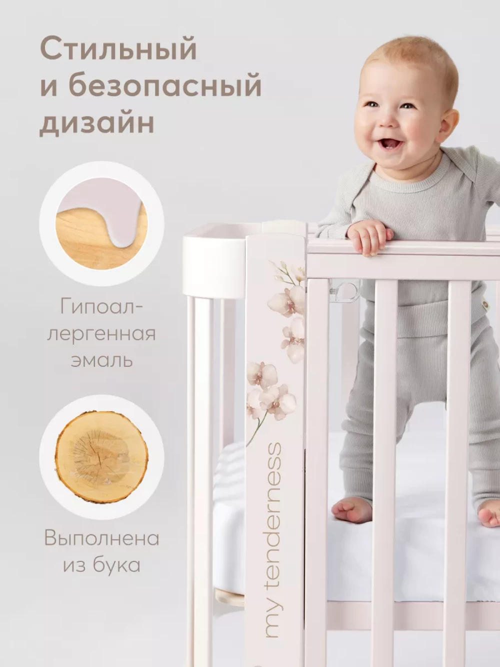 Кроватка-трансформер Happy Baby Mommy Love 160*70 и 100*70 (закругленный) pink
