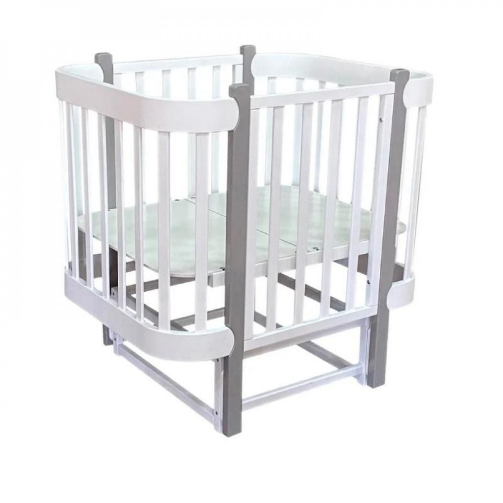Кроватка-трансформер Antel Solnyshko 3 в 1 с маятником 90*70 / 140*70 (закругленный) белый/серый