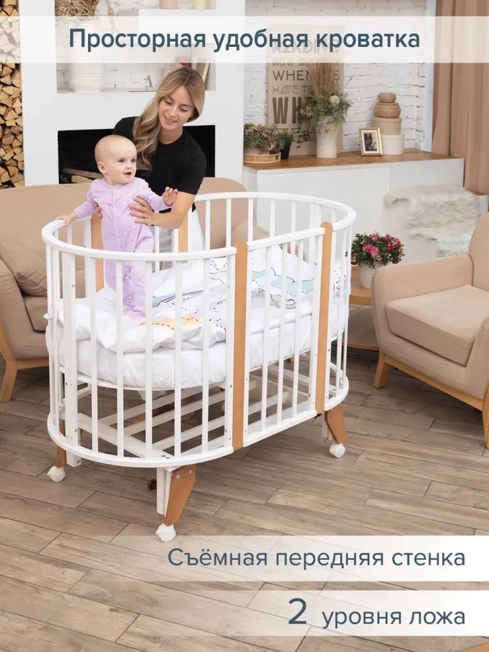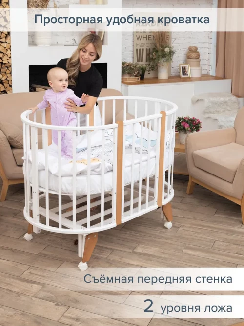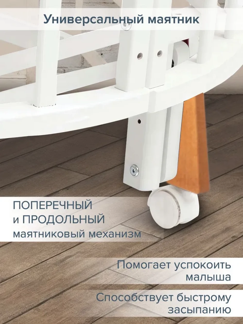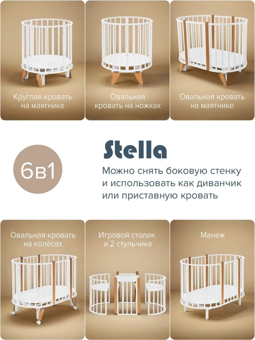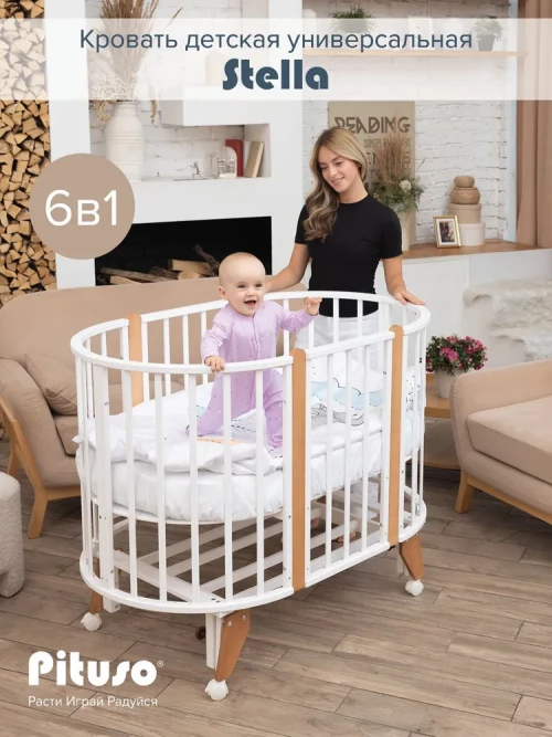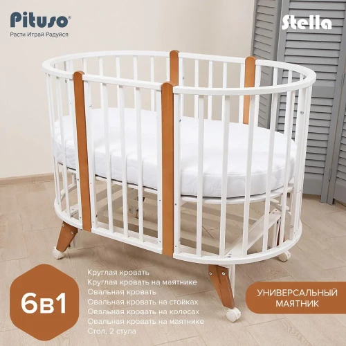 Кроватка-трансформер Pituso Stella 6 в 1 с маятником 125*75 (овал) и 75*75 (круг) белый/бук