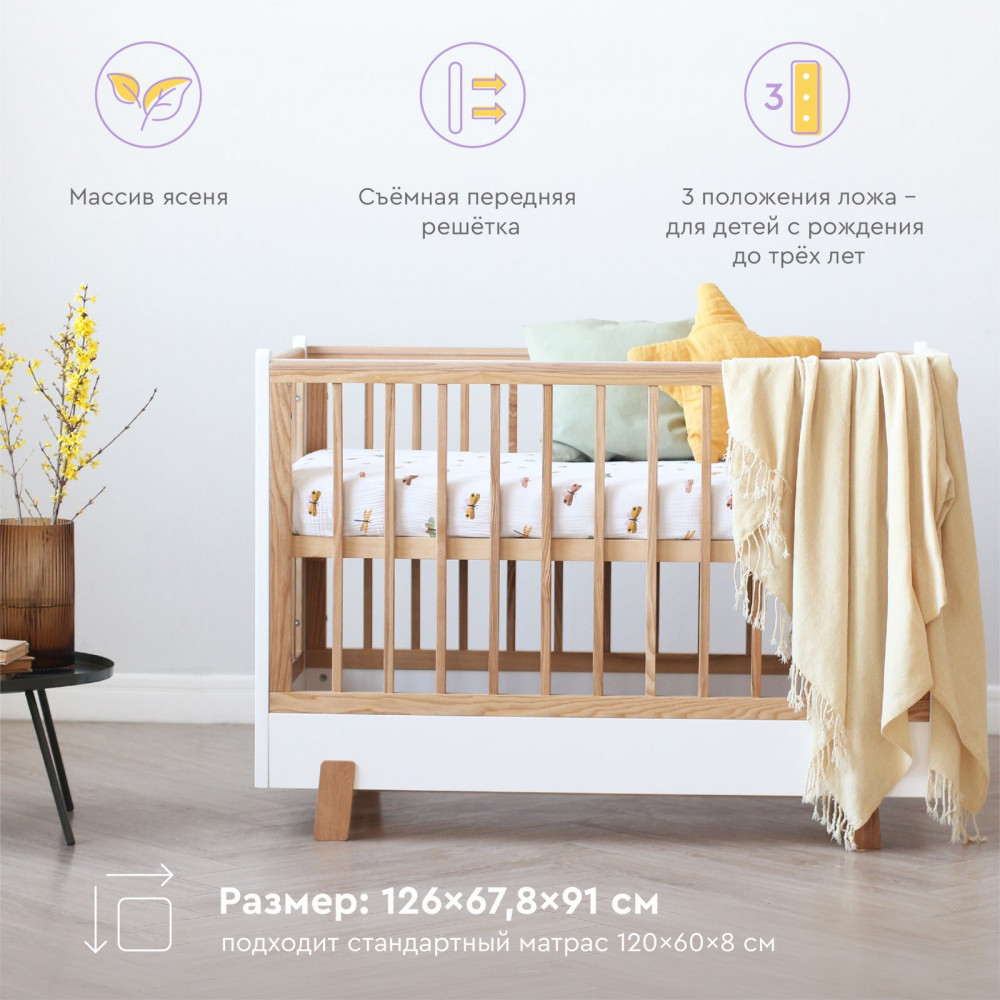 Кроватка Фабрика Облаков Scandi 120*60 без маятника белый/бук