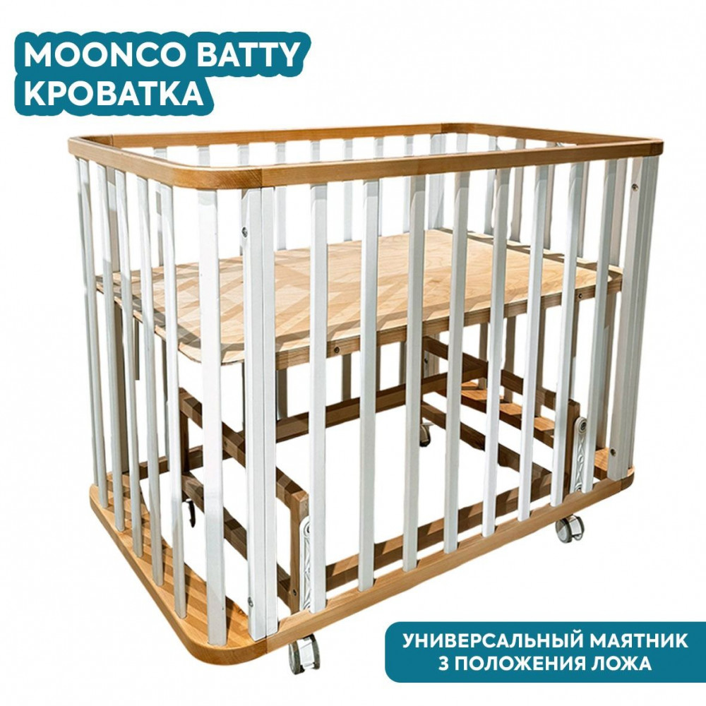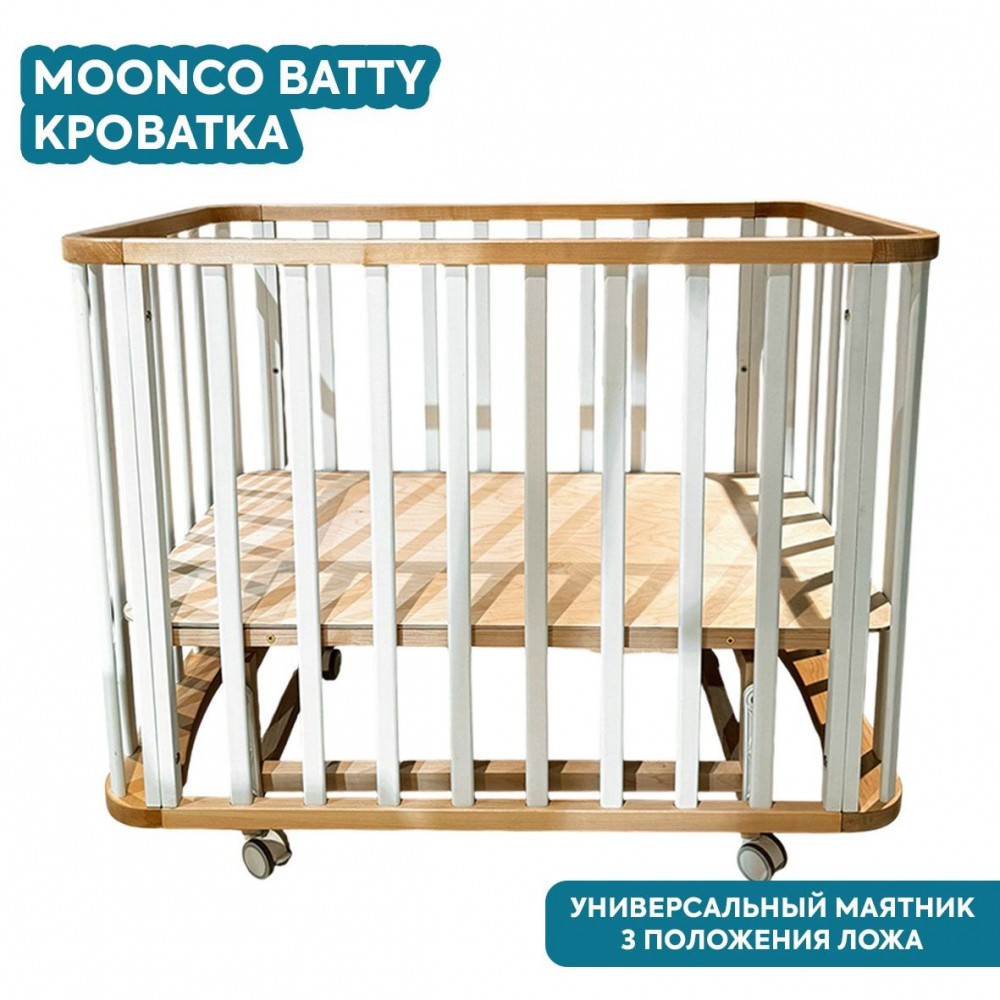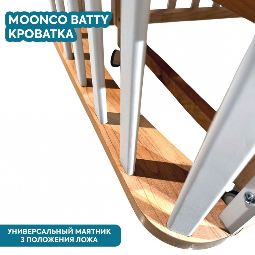 Кроватка Moonco Batty 100*60 с маятником (закругленный) белый/бук