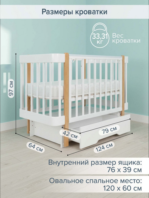 Кроватка Pituso Olivia 120*60 c маятником белый бук