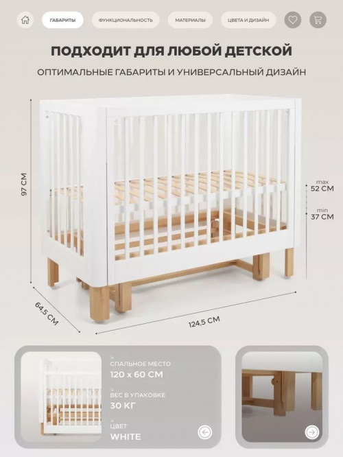 Кроватка Rant Amira с маятником 120*60 White