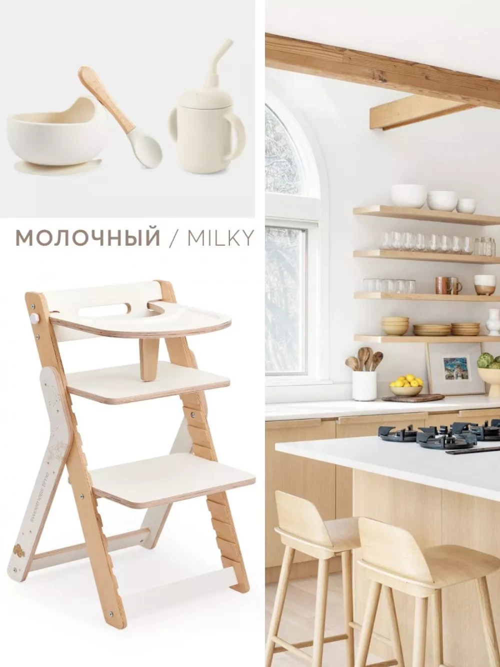 Стул для кормления Happy Baby Calmy молочный