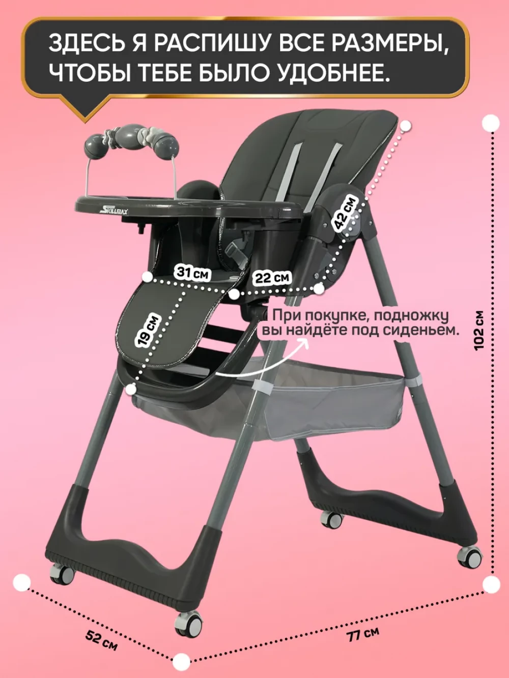 Стул для кормления Skillmax s-330 grey