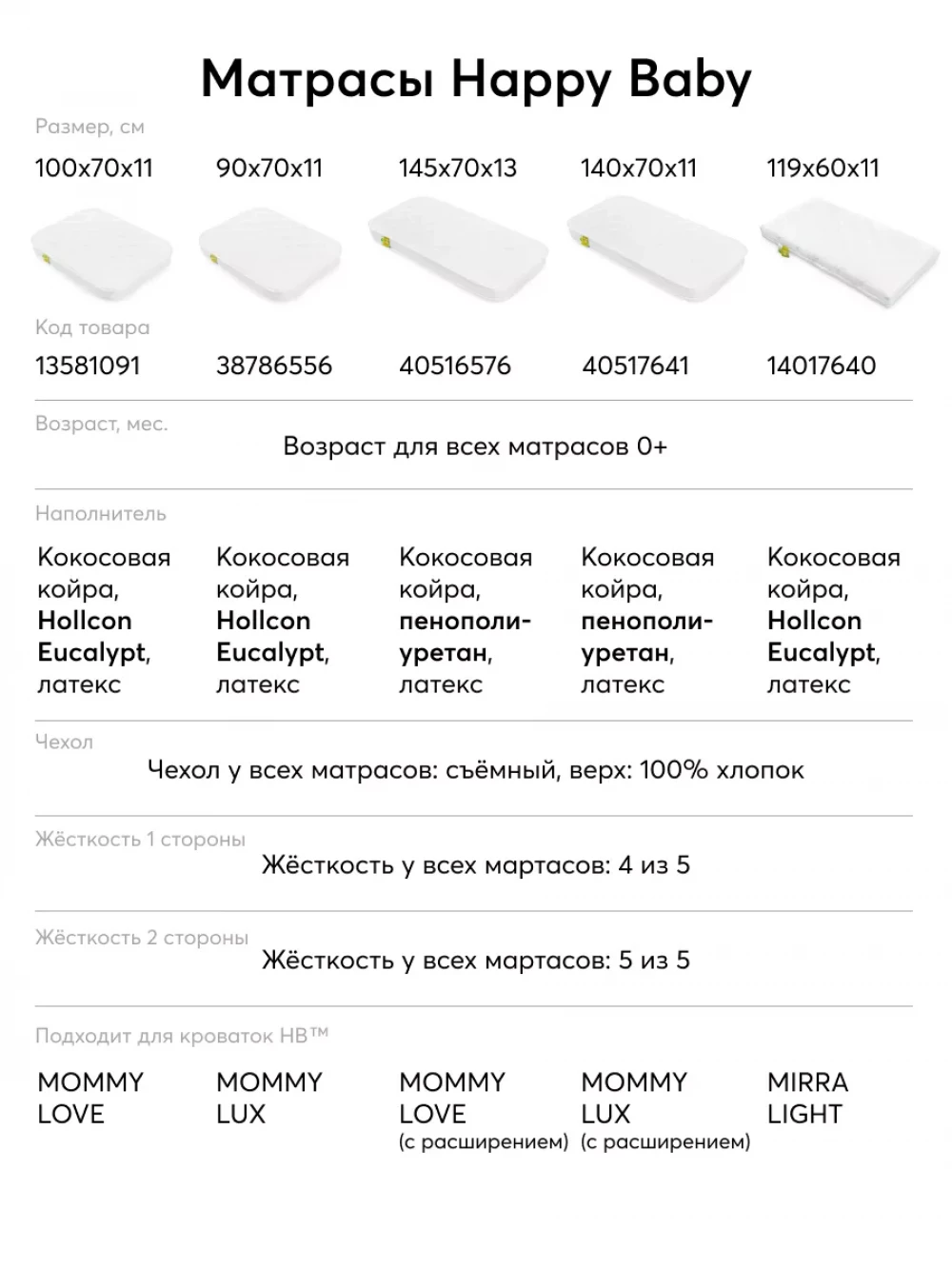 Матрас для кроватки 90*70 11 см кокос прямоугольный закругленный Happy Baby Mommy Lux