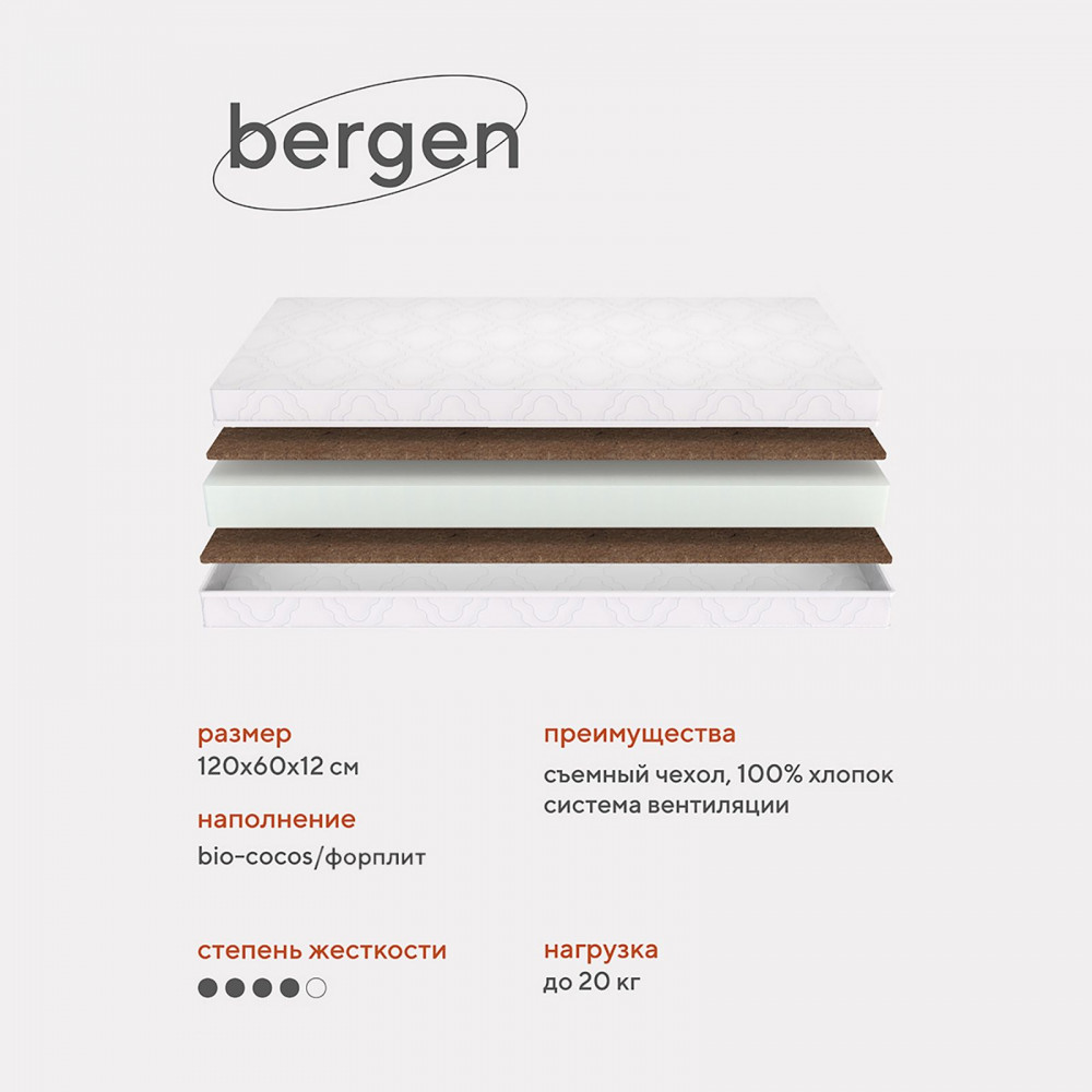 Матрас для кроватки 120*60 12 см прямоугольный Rant Bergen Eco