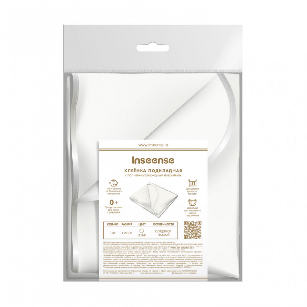 Клеёнка подкладная с ПВХ покрытием Inseense 0,5 x 0,7м с тесьмой (белая) (20) С