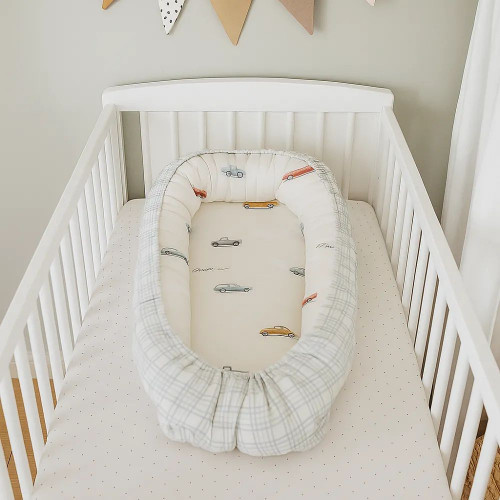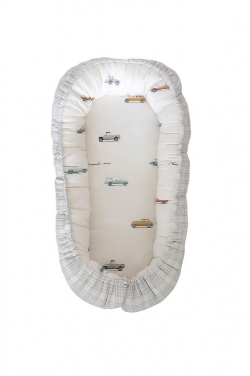 Подушка-гнездышко "Маленький гонщик" цв.серо-голубой 4153