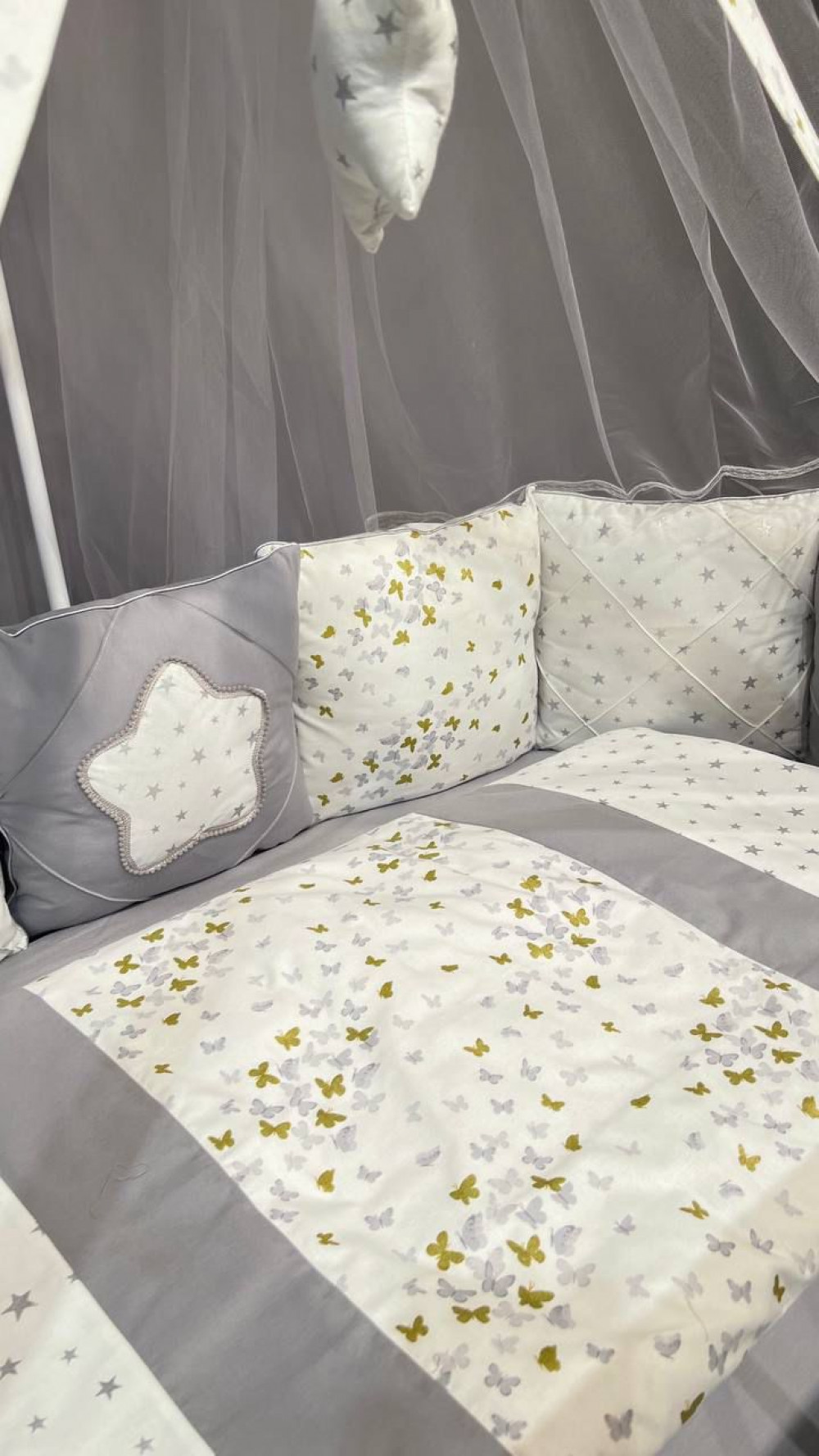 Постельное белье 109 серый бабочки