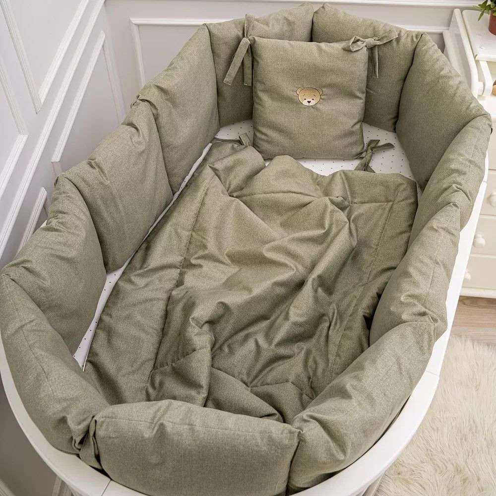 Набор 4 предмета для овальной и прямоугольной кроватки "Сканди ", цвет оливковый, 8001/3